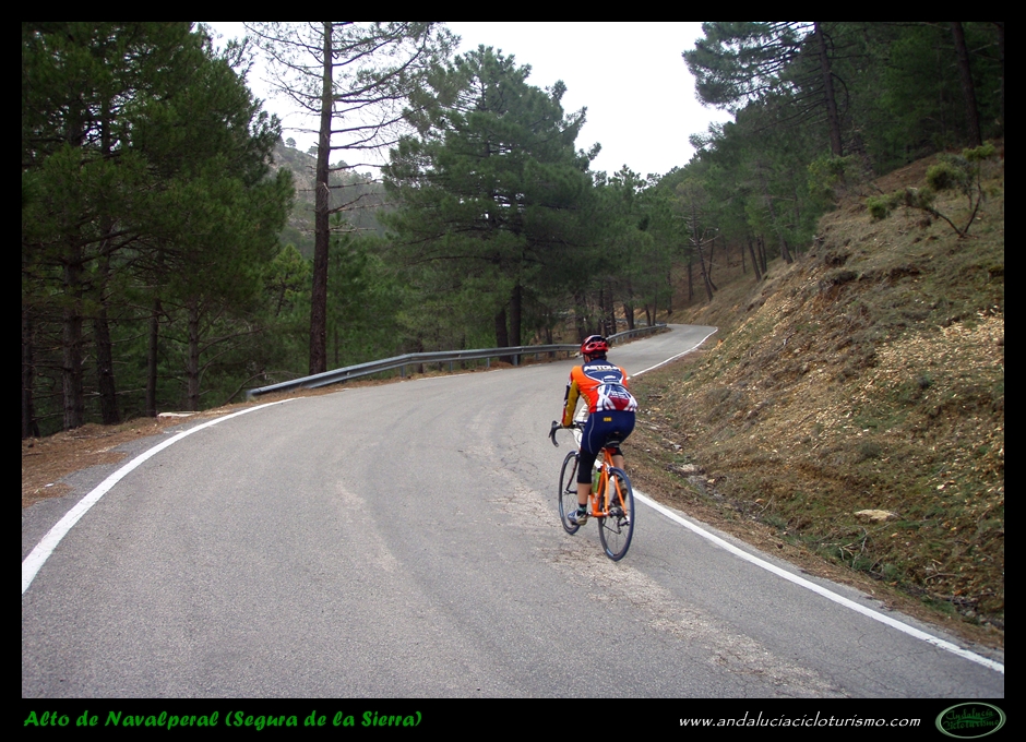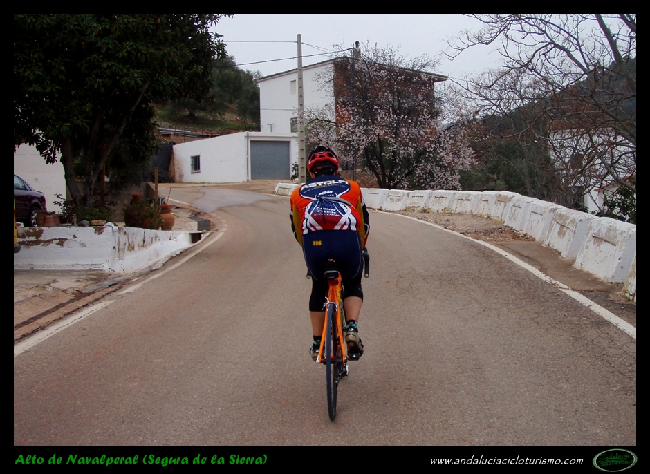 De una considerable longitud, este alto de Navalperal (como lo hemos denominado) podemos dividirlo en dos partes bien diferenciadas: de un lado, unos primeros 7,5 km. de subida continua entre el 4 y el 7% hasta Segura de la Sierra; de otro lado, un tramo largo, irregular, con constantes repechos y descansos hasta coronar a 1.362 m. de altitud.