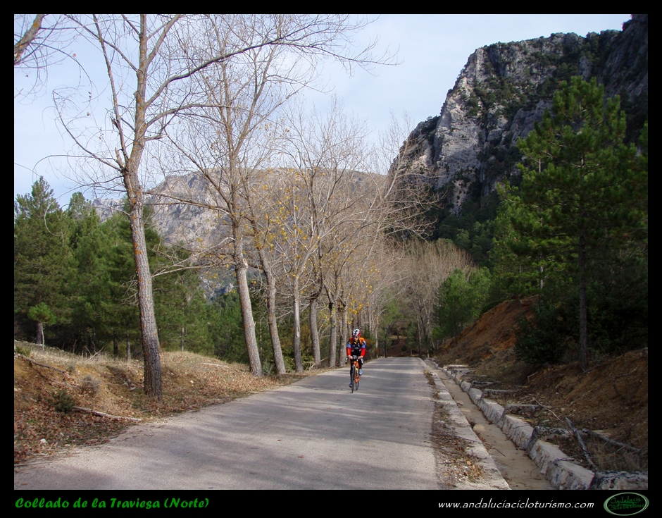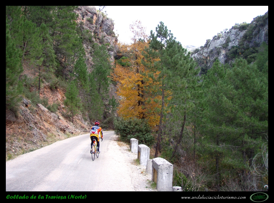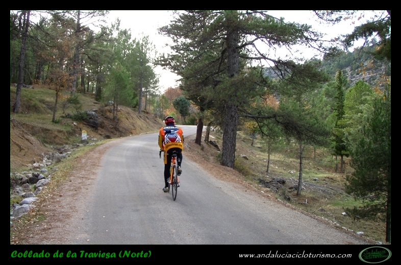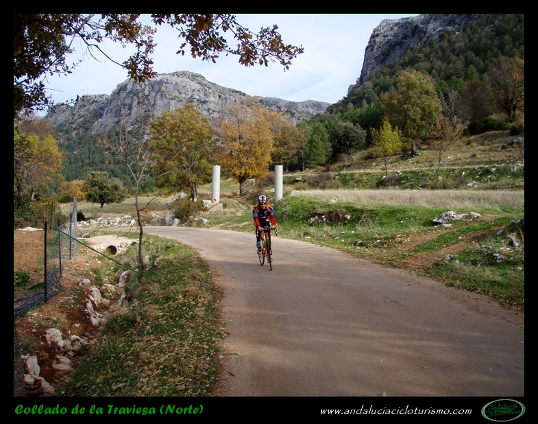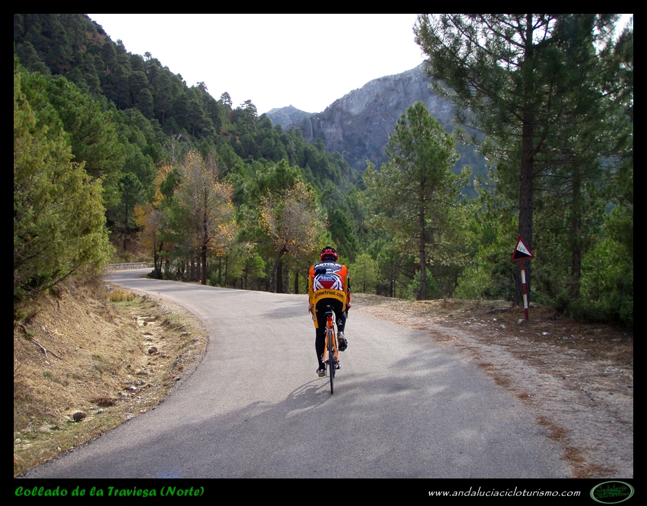 Sin embargo, aún quedará un pequeño tramo de falso llano ascendente para coronar el punto más alto de la carretera a 1.386 m. de altitud, en el Collado de la Traviesa o, como era conocido por los lugareños, Collado del Raso de la Escalera, un paseo antes de afrontar el descenso de un km. hasta el Collado del Pocico en primer lugar, y hasta el embalse de Aguascebas y Mogón en segundo.