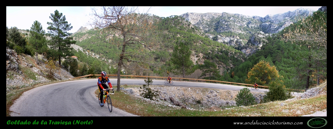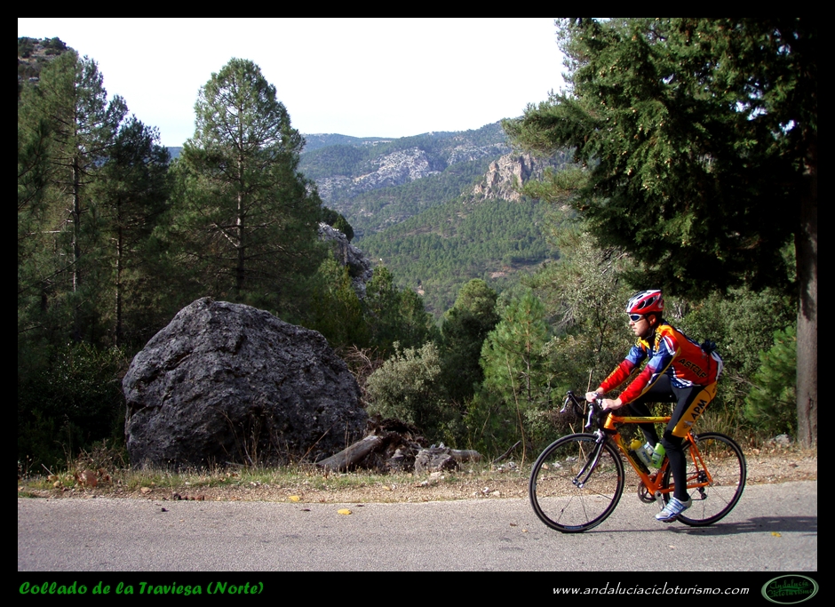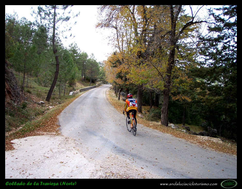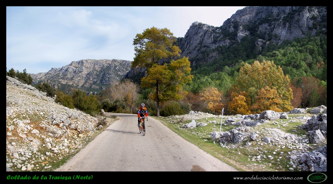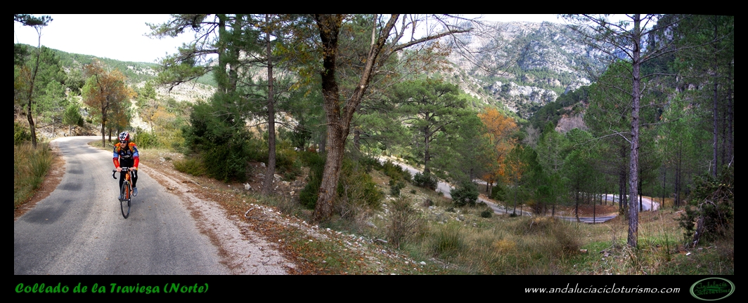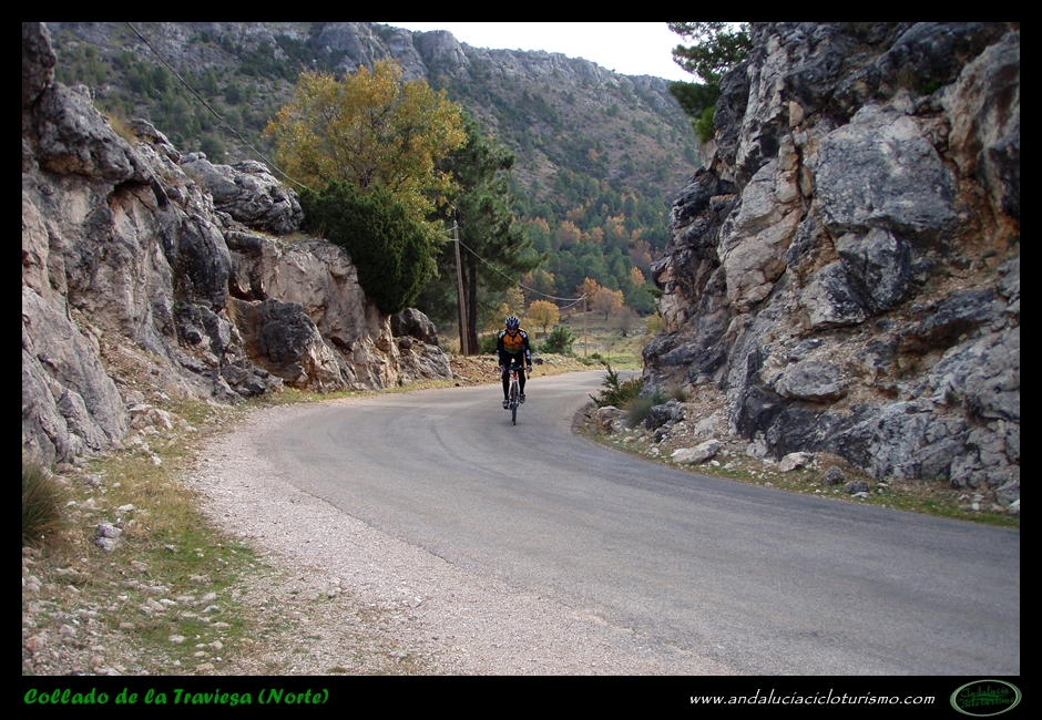 Sin embargo, aún quedará un pequeño tramo de falso llano ascendente para coronar el punto más alto de la carretera a 1.386 m. de altitud, en el Collado de la Traviesa o, como era conocido por los lugareños, Collado del Raso de la Escalera, un paseo antes de afrontar el descenso de un km. hasta el Collado del Pocico en primer lugar, y hasta el embalse de Aguascebas y Mogón en segundo.
