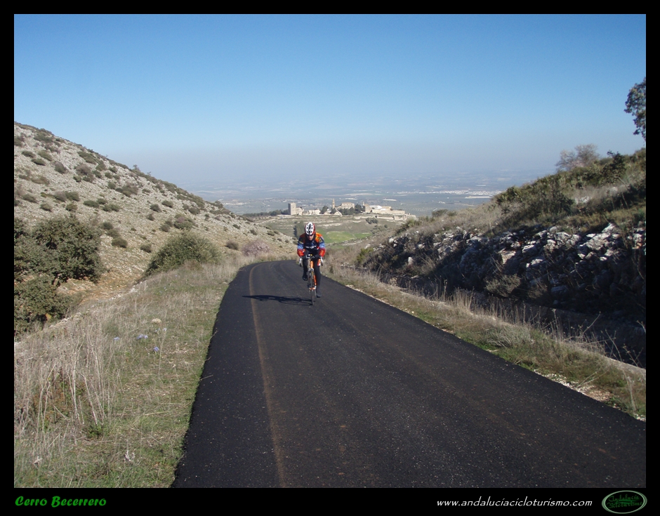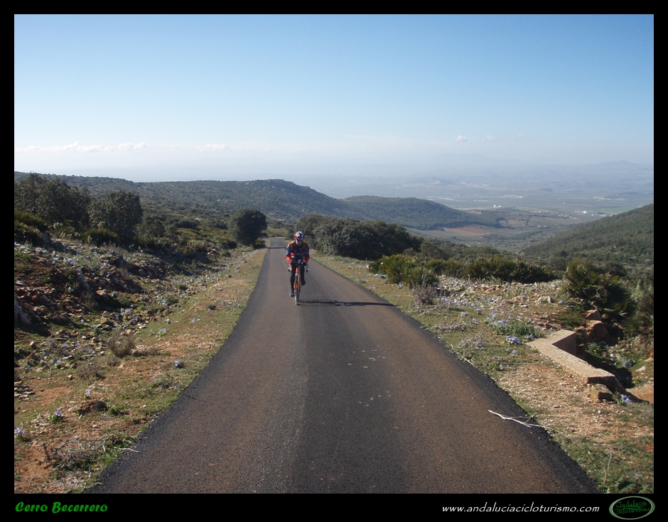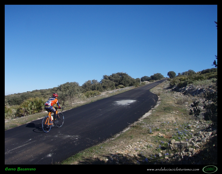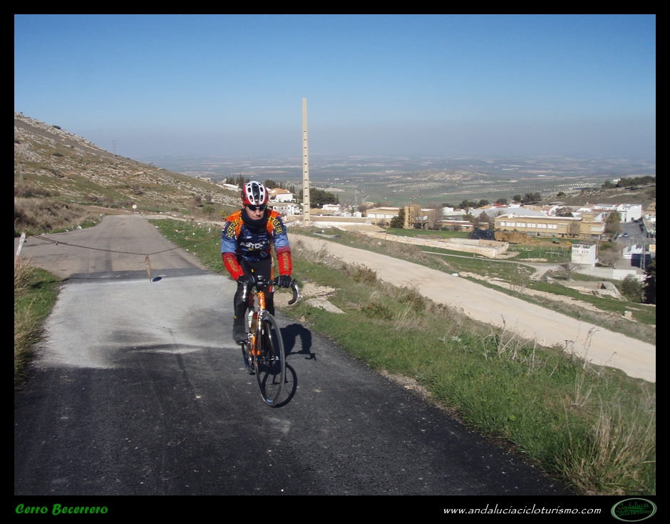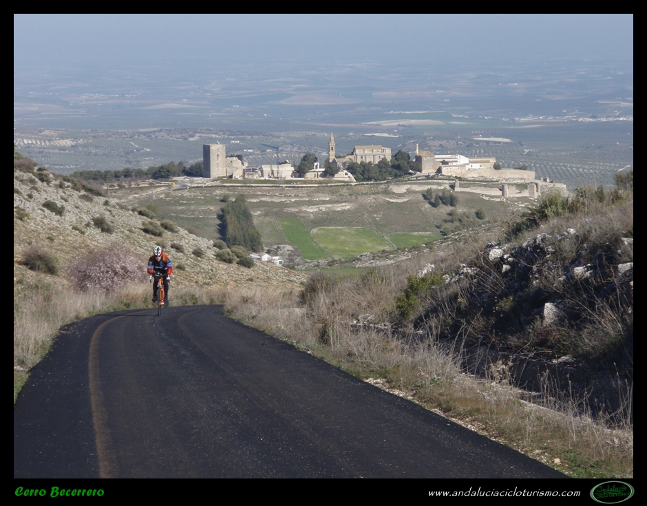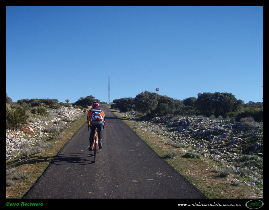 Los primeros metros de la carretera hasta la Repetidora cuentan actualmente con un firme algo roto a lo que se une un brusco aumento de la pendiente que alcanzará el 17% en una terrible curva a izquierdas. Se sigue una recta que trepa paralela a la ciudad regalándonos las mejores vistas de la alcazaba en primer término y de los diferentes pueblos que se difuminan por la campiña en segundo. Al punto tropezamos con una cadena que nos obliga a poner pie a tierra por un instante para continuar la marcha, pero que no nos impide culminar el ascenso. Además, a partir de aquí encontraremos un asfalto perfectamente liso.