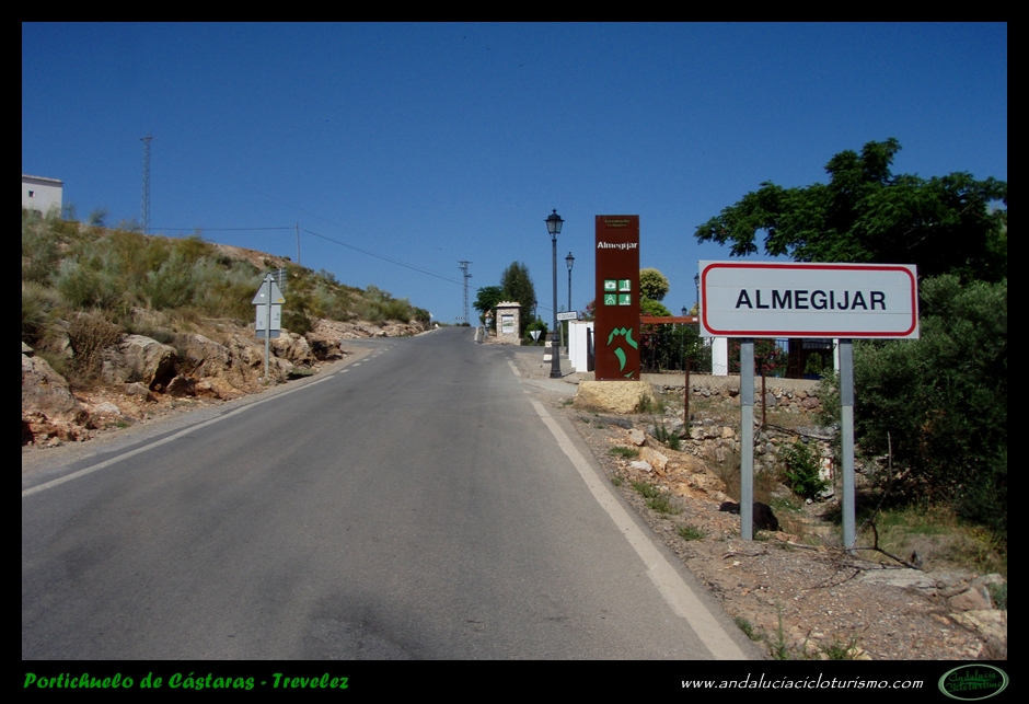 Aunque el cartel no lo vamos a encontrar hasta el cruce con Trevélez y Juviles, lo cierto es que el sitio del Portichuelo de Cástaras se encuentra poco antes de ese punto, a casi 1.400 m. de altitud, en una de las encrucijadas más importantes de la Alpujarra. En las inmediaciones del lugar se encuentra la acequia Real de Cástaras, proveniente de la sierra, y en el sitio se cultivan desde no hace mucho fresas de alta montaña. Varios cientos de metros más adelante un falso llano nos sitúa en el actual cruce de carreteras donde, ahora sí, encontraremos manifiesta referencia del lugar en que nos hallamos.