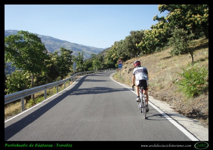 En un puente sobre el Guadalfeo (carretera A-4030), allá por la cabecera del río, se inician un par de subidas imprescindibles para los amantes de los puertos: la primera, camino de Torvizcón y de la Contraviesa, viene a morir en el collado de Canseco o, si se quiere, en el Haza del Lino; la segunda se adentra por Sierra Nevada en busca de Trevélez a través del portichuelo de Cástaras. De las características de la última nos disponemos a dar cuenta en estas líneas sin omitir detalle.