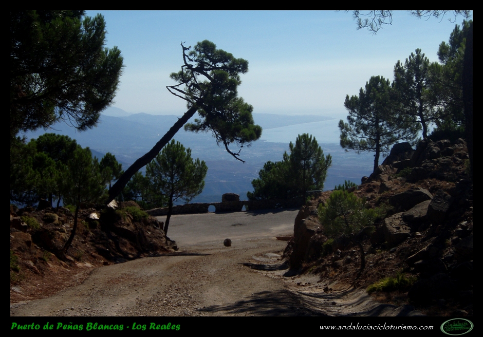 Tras una última herradura encontraremos la puerta de salida de este calvario. Un breve descansillo y enlazamos, por fin, con la vertiente tradicional en un punto aún ascendente, pero de pendiente moderada. La carretera se ha ensanchado a la par que se abre la panorámica hacia el Mediterráneo: en días claros resulta fácil atisbar el estrecho de Gibraltar.