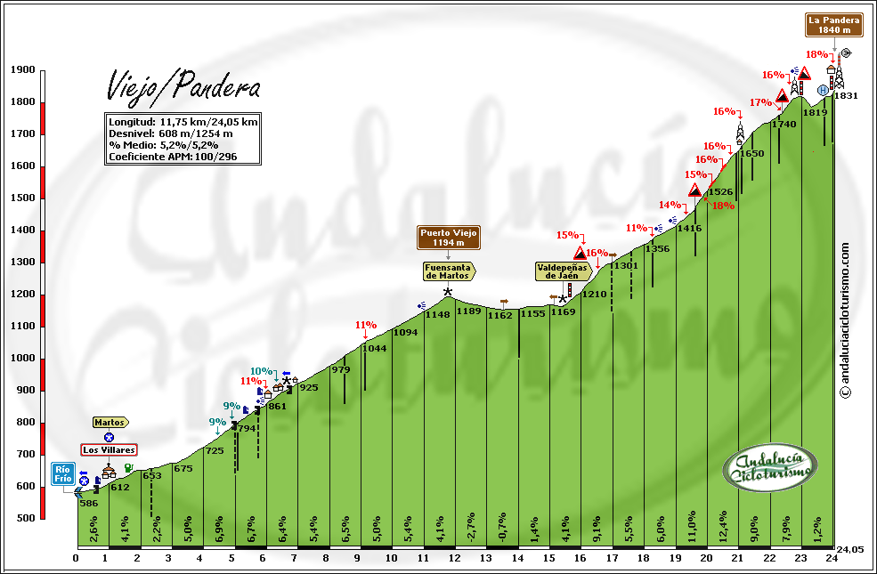 Desde que la Vuelta Ciclista a España visitara por primera vez esta cumbre de la Sierra Sur de Jaén con Roberto Heras victorioso, La Pandera se ha convertido en un alto de referencia dentro del cicloturismo nacional. Si en los primeros años el acceso a su carretera estaba restringido y resultaba necesario solicitar la llave del portón, a día de hoy, con las instalaciones militares de la cima abandonadas y a la espera de ver si se reutilizan de algún modo, sus últimos 8,5 km. aguardan en perfecto estado a todo aquel que osa retarse en sus rampas.