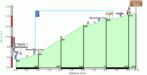 El cuarto es la cuesta de los Gallardos o Puerto de Zamora, con APM 41, son 5,31 km al 4,38% de media y desnivel 233 m.