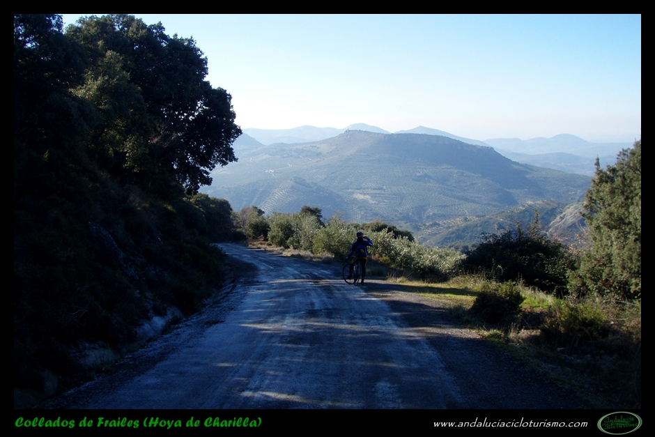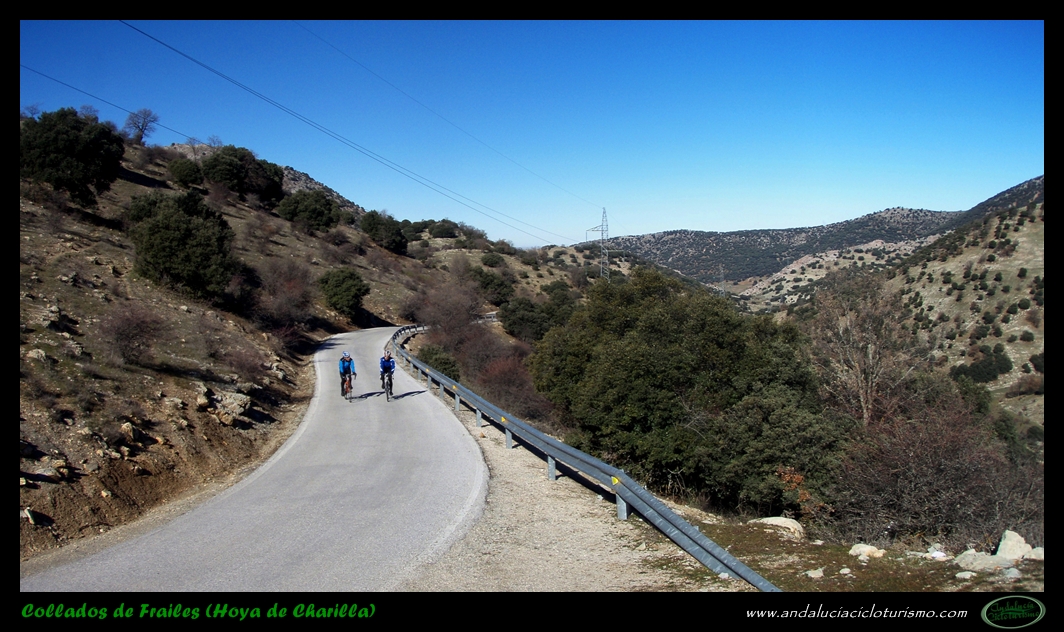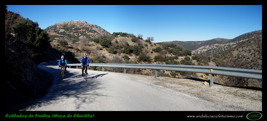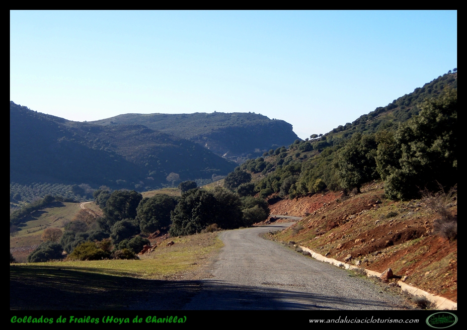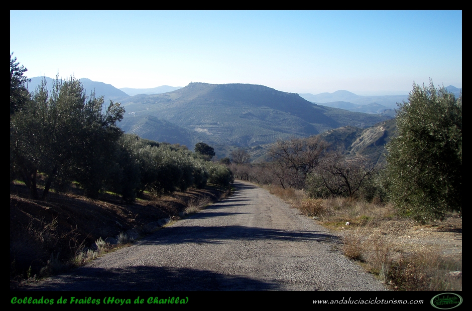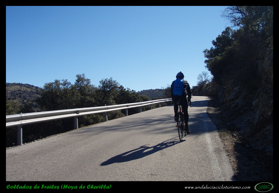 Pasamos el collado y su corto descenso –con asfalto en muy mal estado, por cierto- nos deja en la carretera JV-2262, una antigua ruta de pescaderos, hoy preciosa carretera, que nos conduce hacia Valdepeñas y Frailes.