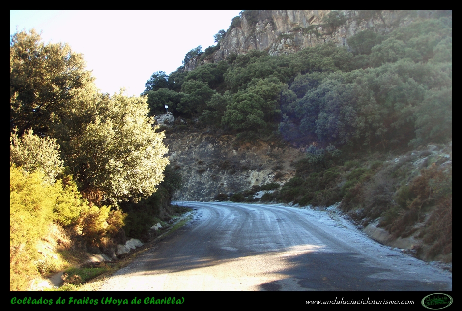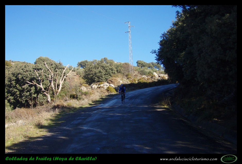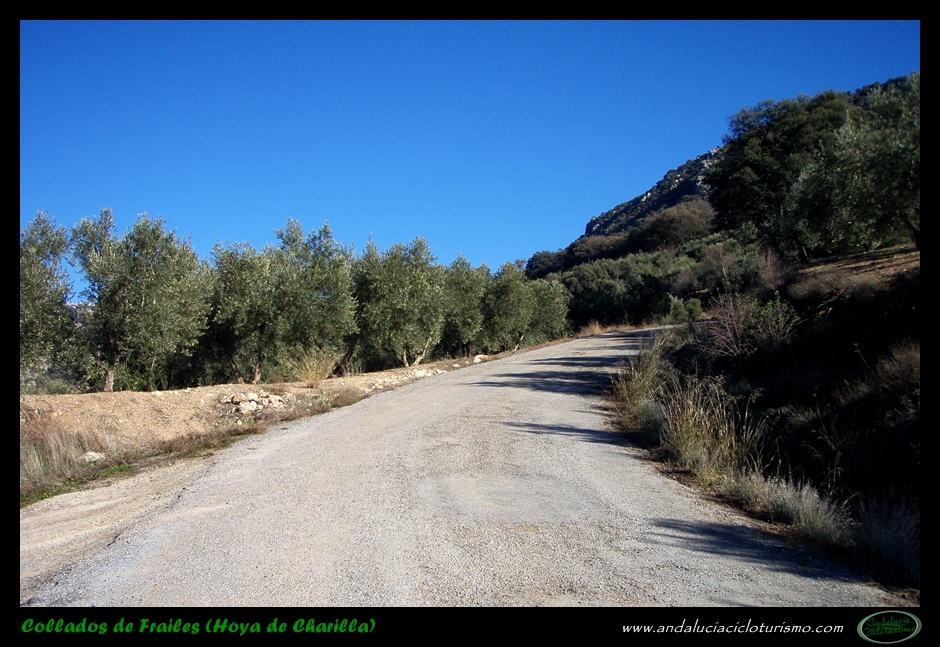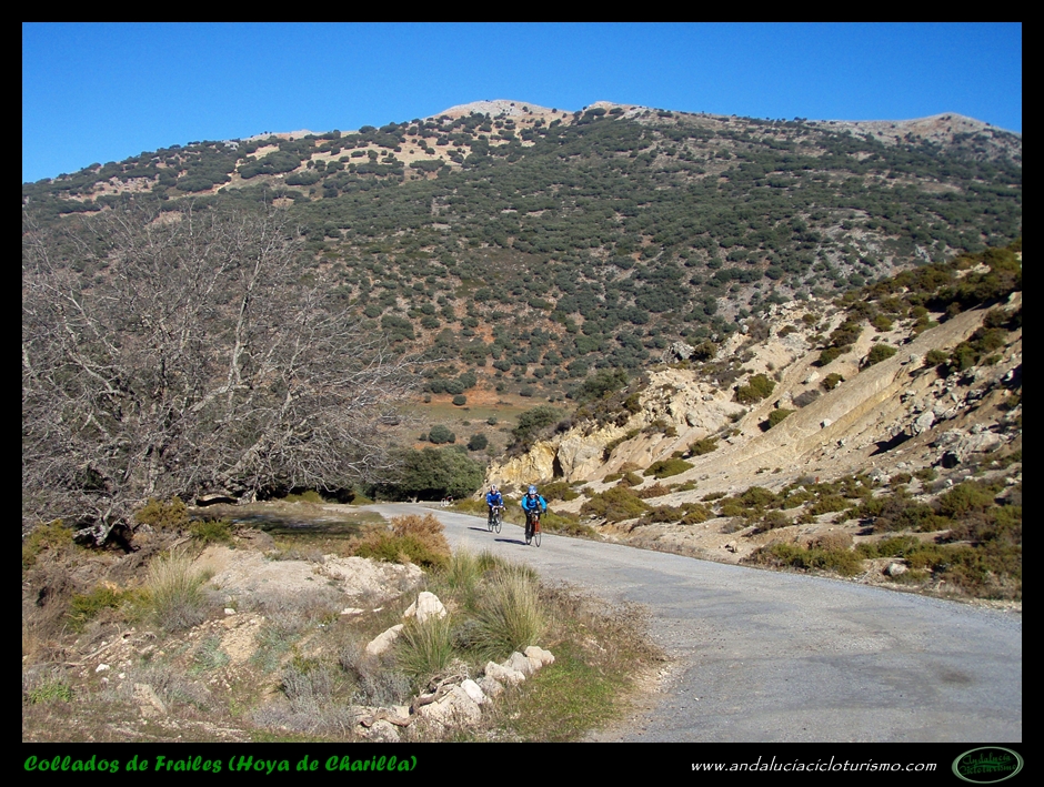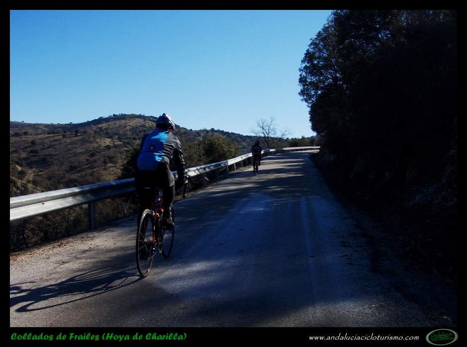 Pasamos el collado y su corto descenso –con asfalto en muy mal estado, por cierto- nos deja en la carretera JV-2262, una antigua ruta de pescaderos, hoy preciosa carretera, que nos conduce hacia Valdepeñas y Frailes.
