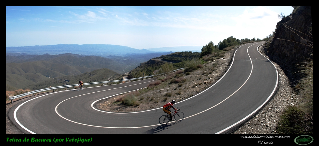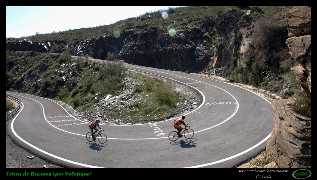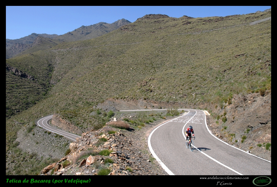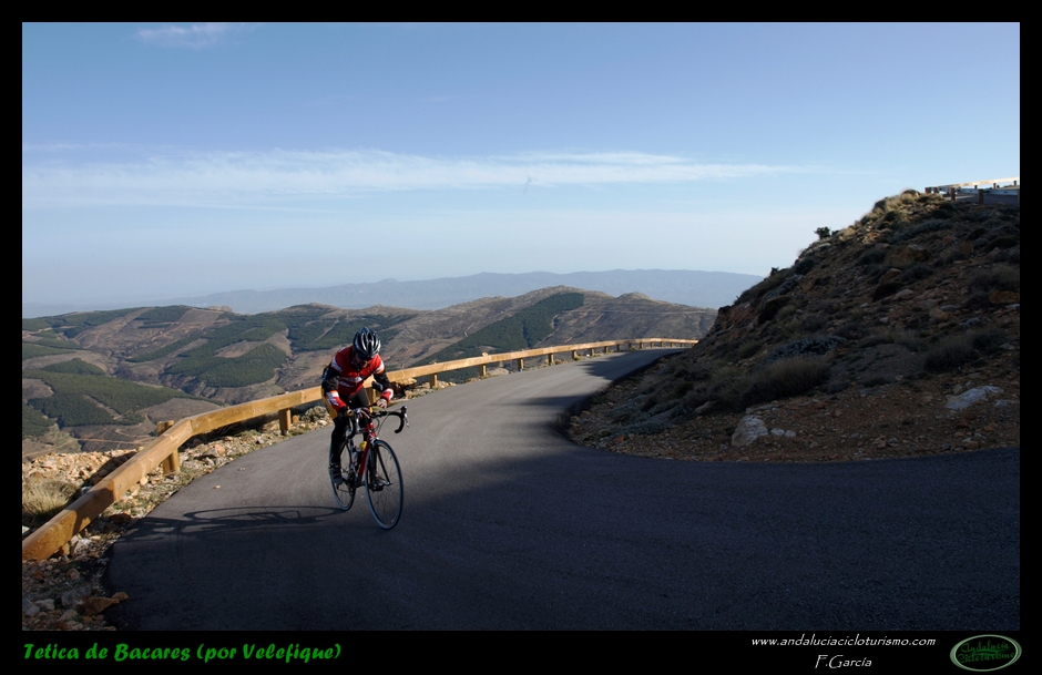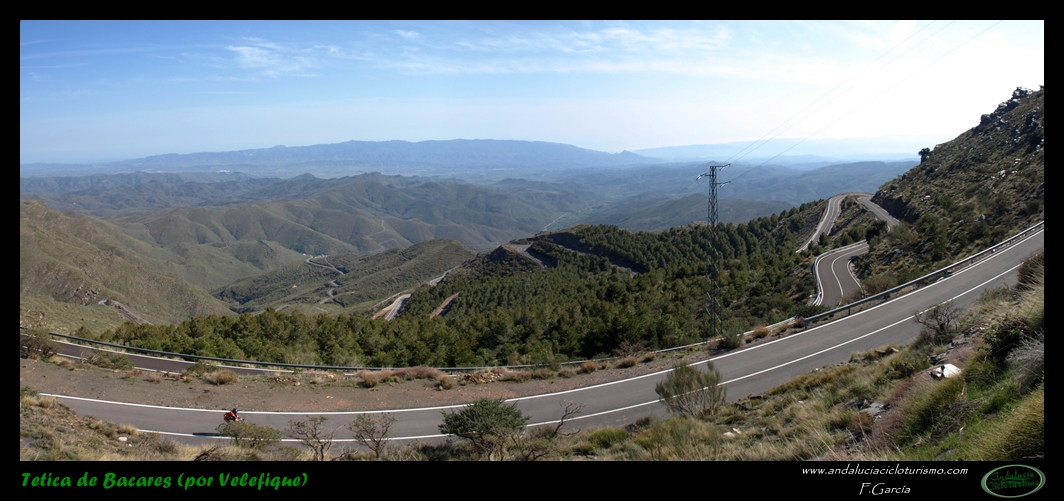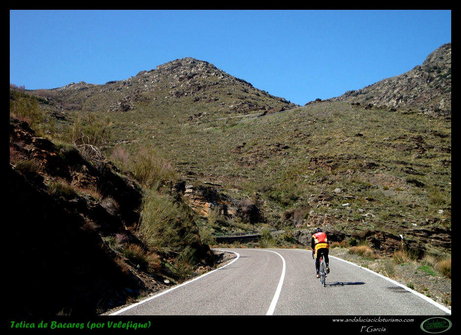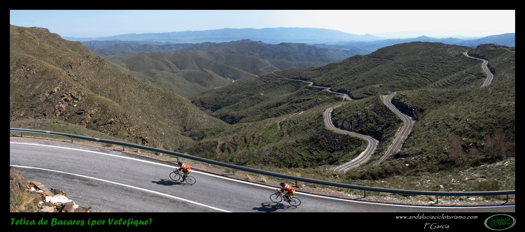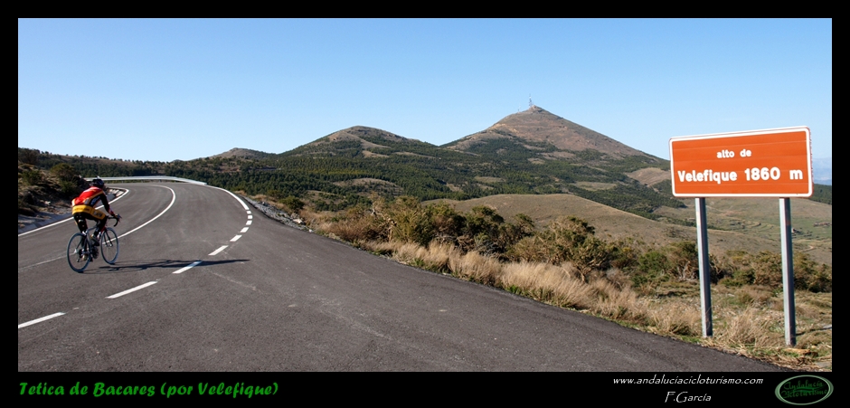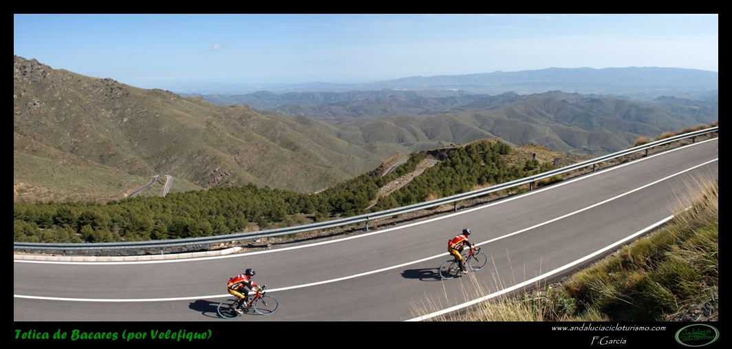 Por lo demás, entrando ya en lo que nos atañe, la carretera del puerto de Velefique y su prolongación a la Tetica de Bacares son, a nuestro juicio y sin temor a equivocarnos, una de las vías más escénicas de Andalucía, cuando no de toda España. Y, por si éste fuera poco aliciente para subirlo, el puerto además se las trae: 23,65 km. de ascenso para 1.400 m. de desnivel y 2.074 m. s. n. m., un auténtico “puerto Tour” como gustamos de llamar los aficionados a subidas de tal envergadura.