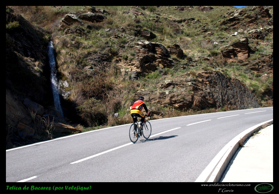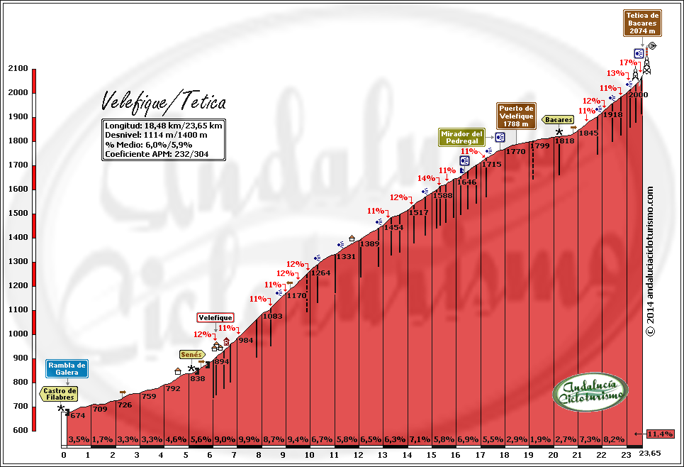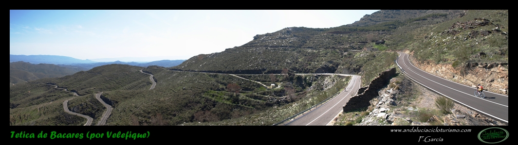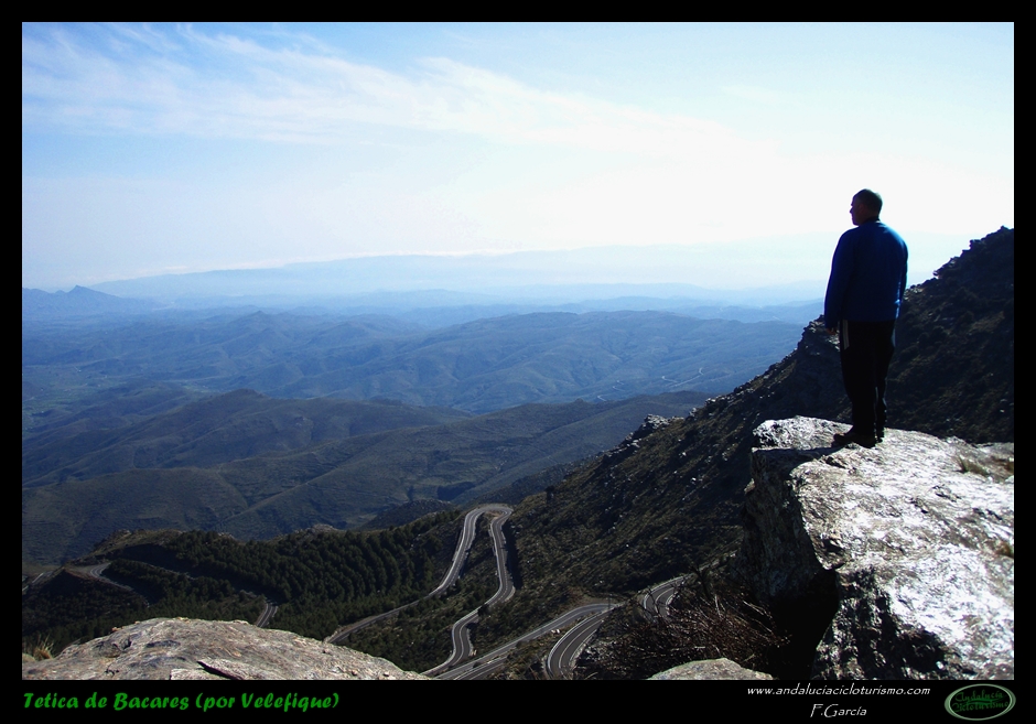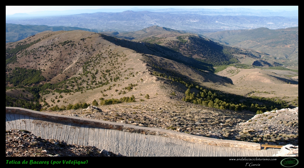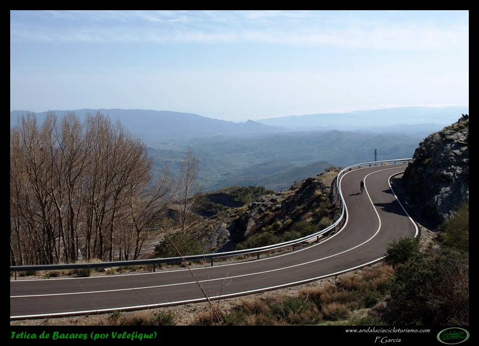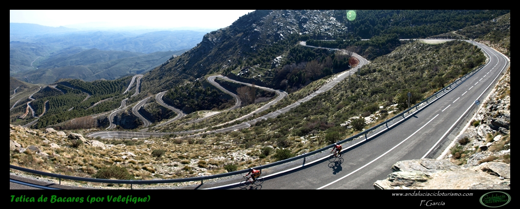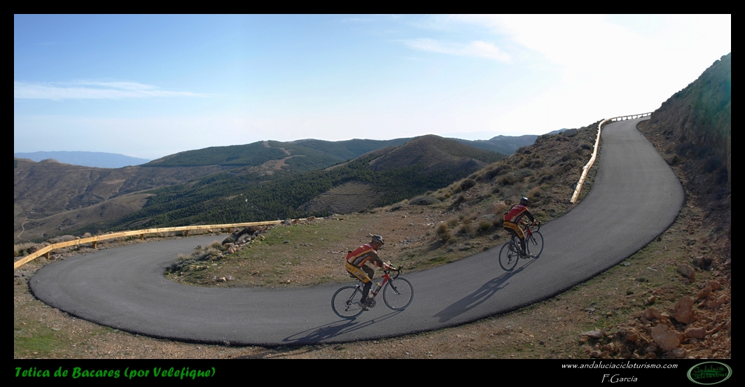 Por lo demás, entrando ya en lo que nos atañe, la carretera del puerto de Velefique y su prolongación a la Tetica de Bacares son, a nuestro juicio y sin temor a equivocarnos, una de las vías más escénicas de Andalucía, cuando no de toda España. Y, por si éste fuera poco aliciente para subirlo, el puerto además se las trae: 23,65 km. de ascenso para 1.400 m. de desnivel y 2.074 m. s. n. m., un auténtico “puerto Tour” como gustamos de llamar los aficionados a subidas de tal envergadura.