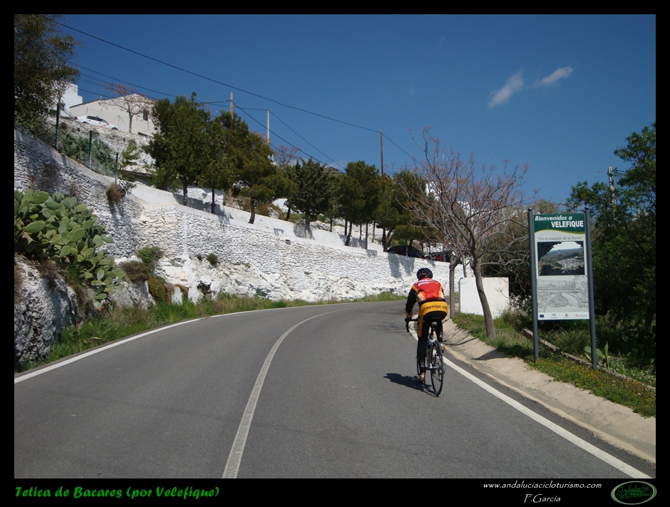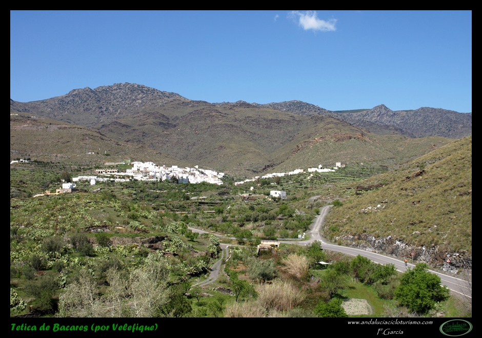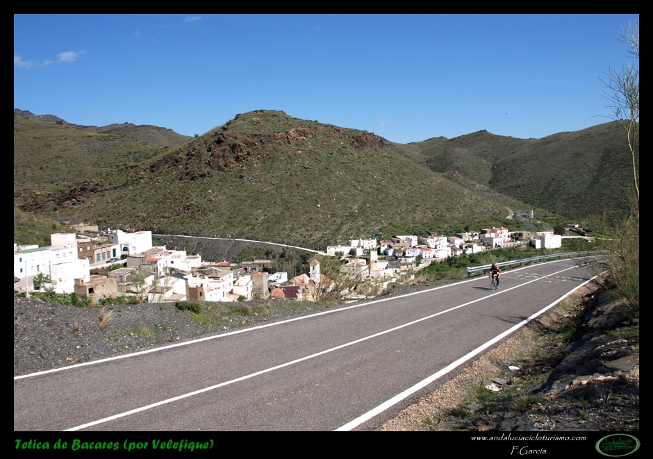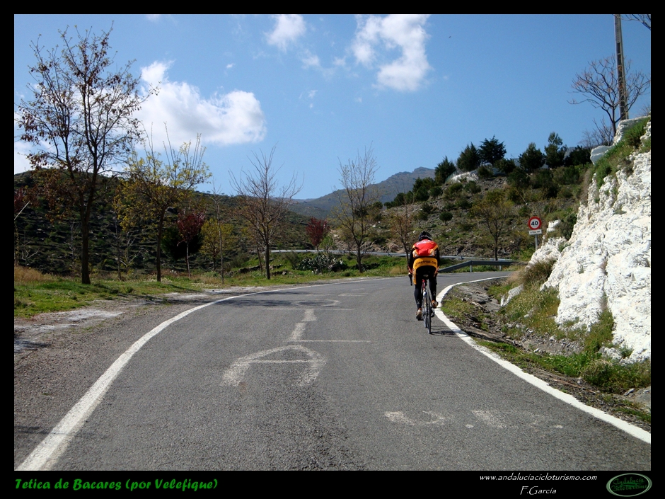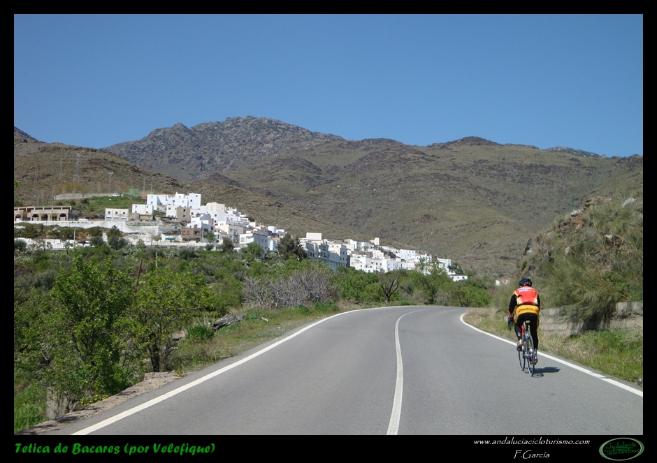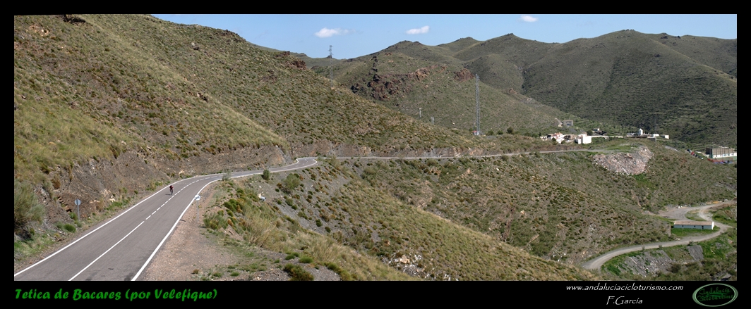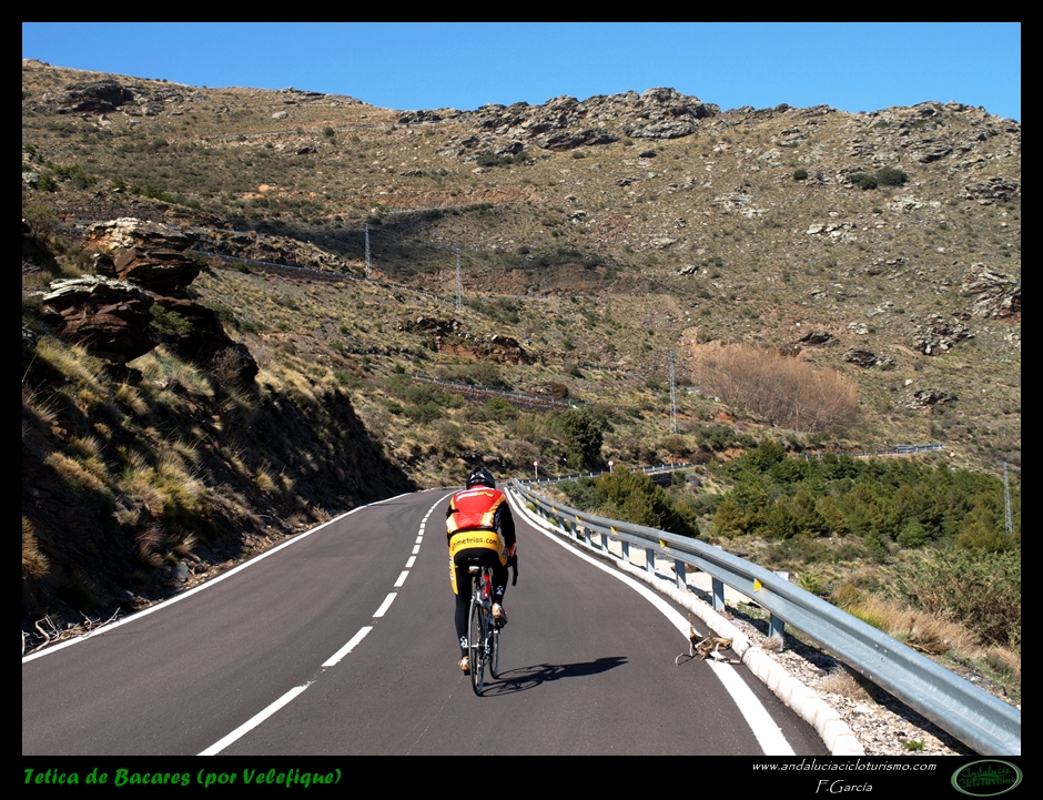 Si venimos desde Tabernas, nuestras piernas habrán notado cómo hasta llegar a este punto la carretera, lejos de llanear, sigue una tendencia siempre ascendente, de forma muy suave, pero constante. Pues bien, dicha tendencia se acentúa ligeramente a partir de la mencionada rambla hasta que, pocos kilómetros más tarde, en las inmediaciones de Velefique, muda definitivamente en franca cuesta.