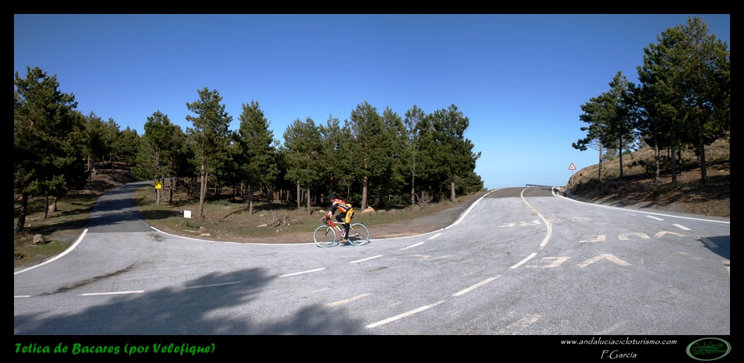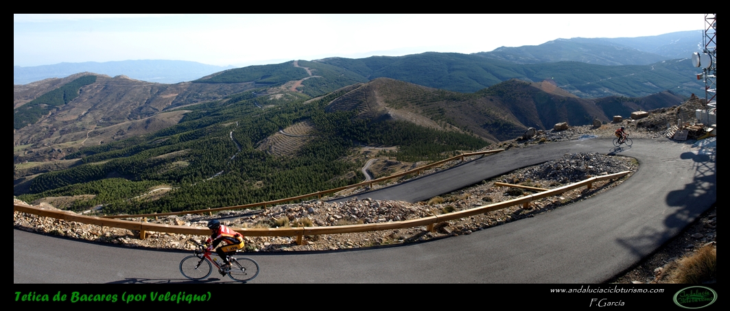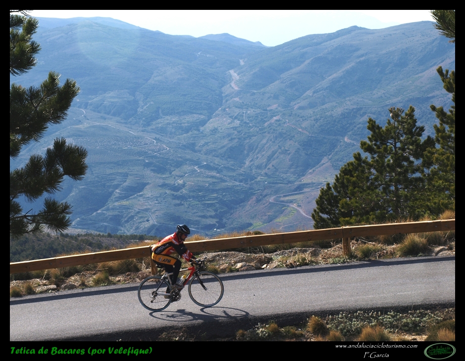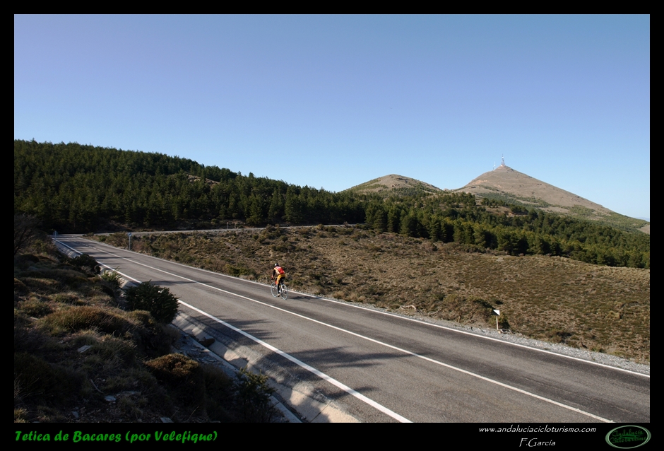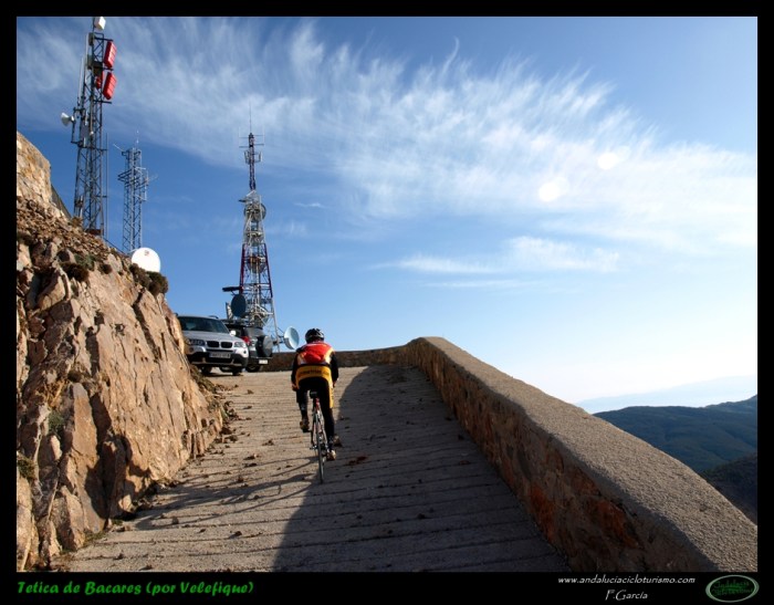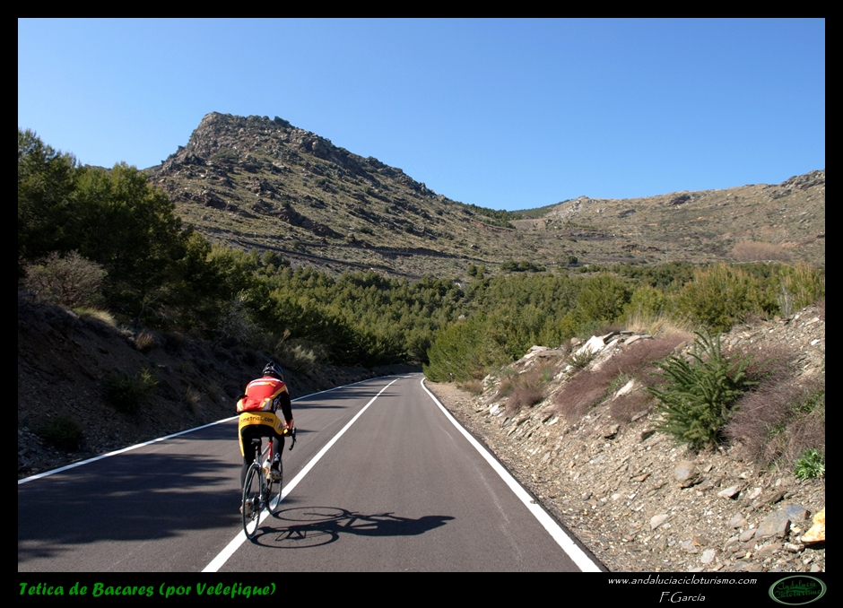 Al abandonar la carretera de Bacares, aún gozaremos de unos últimos instantes de reposo previos a la faena final abrigados por la sombra de un pinar. Luego la carretera, más estrecha pero en perfectas condiciones tras ser remozada pocos años ha, irá empinándose paulatinamente hasta que se nos acabe la montaña. Se nos resistirá esta última conquista a buen seguro, puesto que, largo y duro, el puerto termina por pasar factura y los desfallecimientos no serán ajenos ni siquiera a los más atléticos pedalistas.