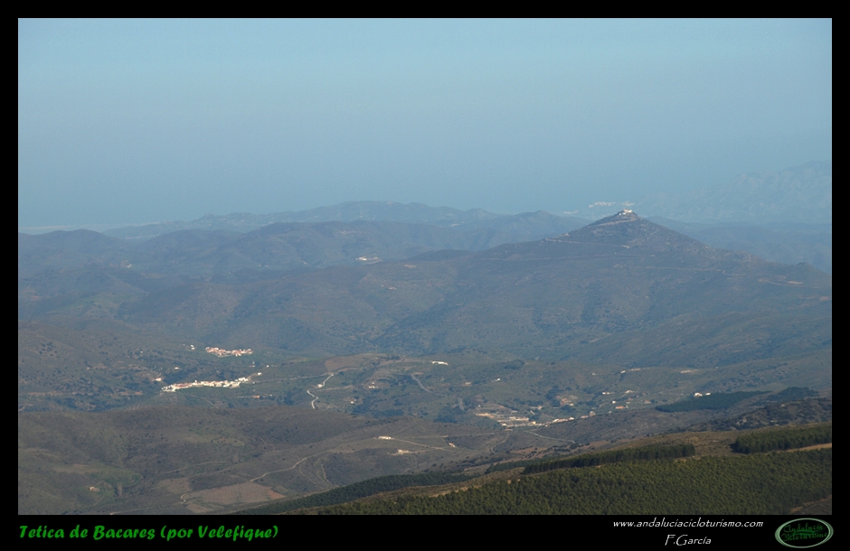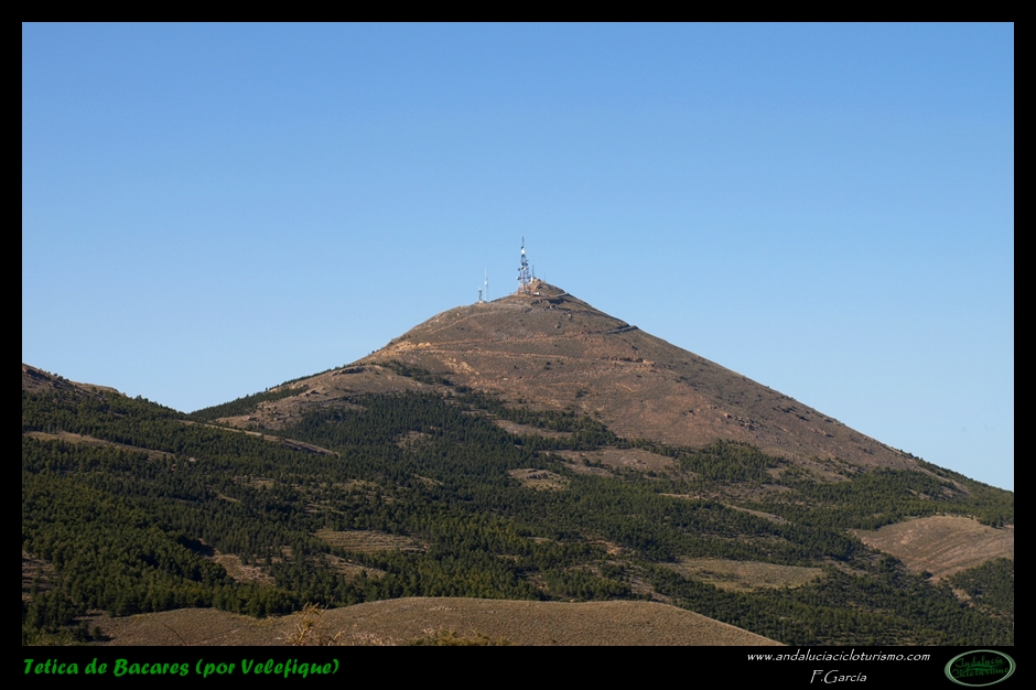 No hemos podido evitar, permítasenos la licencia, la chanza en el título de esta entrada, y es que tanto el nombre de tetica con que denominaron los lugareños la montaña, como la situación geográfica de la misma a kilómetros de cualquier gran ciudad propician, sin pretenderlo, un brindis al chascarrillo y a la boutade: en efecto, por su puntiaguda y cónica forma, es comprensible que los paisanos acabaran por denominar esta característica cumbre de la Sierra de los Filabres con el diminutivo de teta, un diminutivo que nosotros queremos entender como “afectivo”, porque si consideramos la dimensión del pico y su altitud -cercana a los 2.100 m. de altitud-, convendremos en que de diminuto tiene poco; por otra parte, pocos lugares hay tan alejados en apariencia y situación de una gran urbe como este monte de la Tetica de Bacares, el propio pueblo que le confiere su nombre y los limítrofes como el mismo Velefique, en cuyo término municipal se inicia el ascenso.