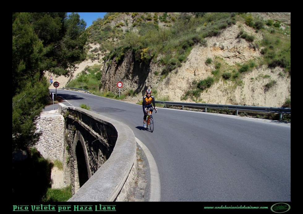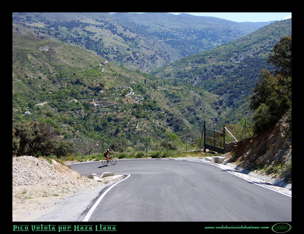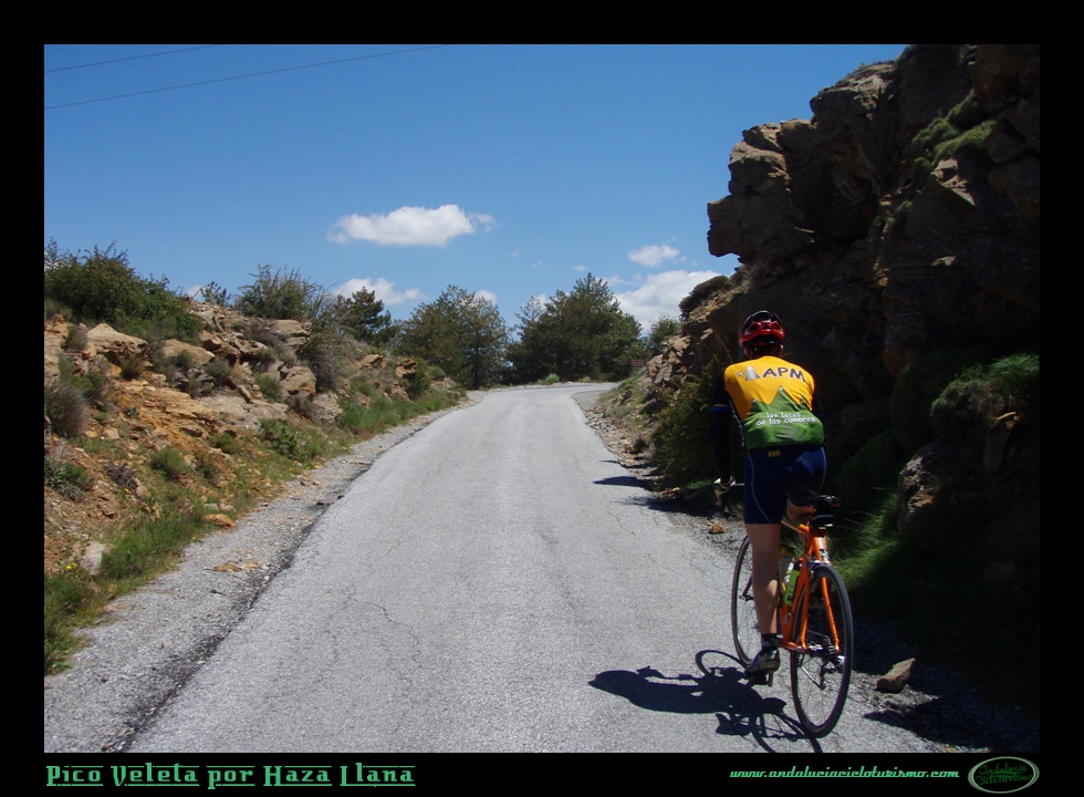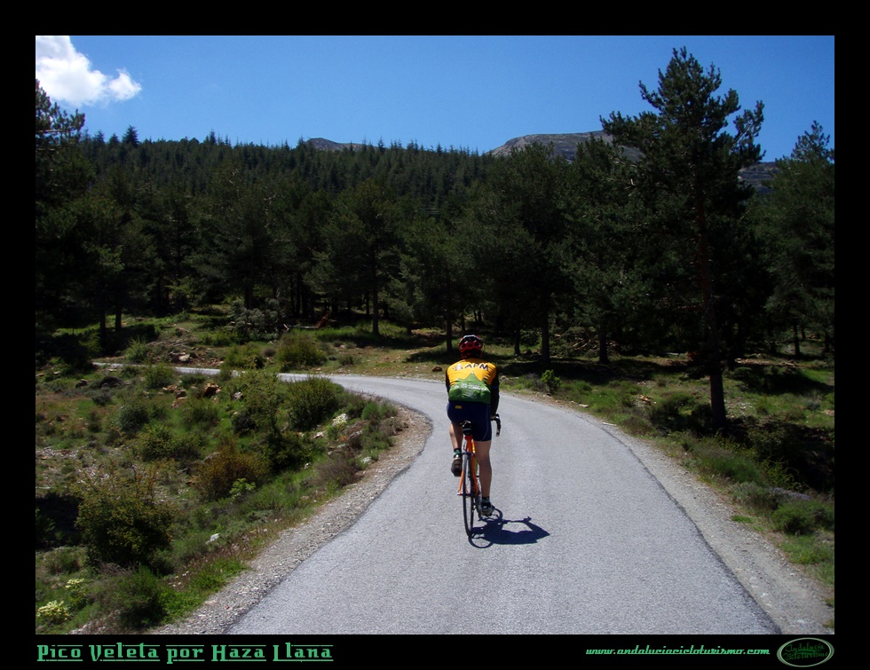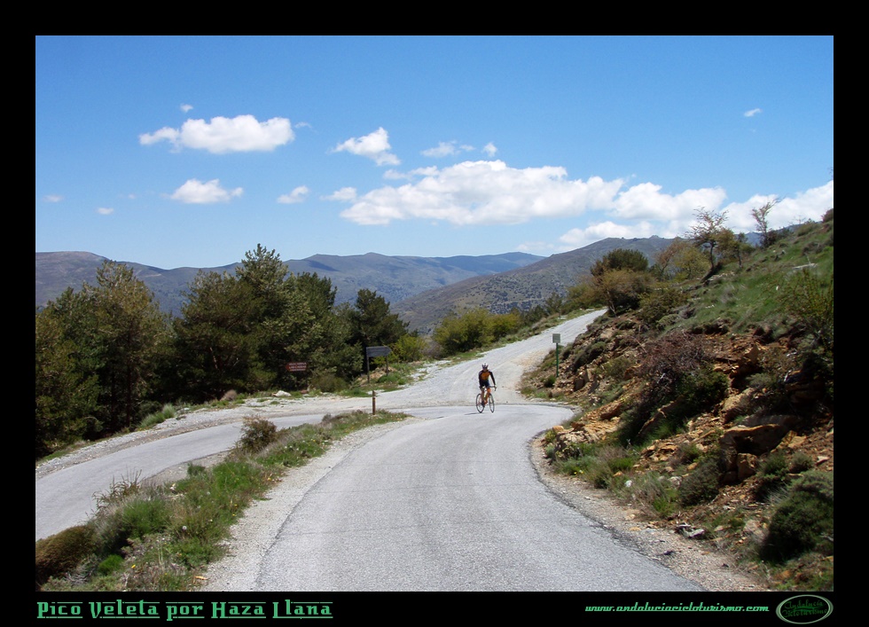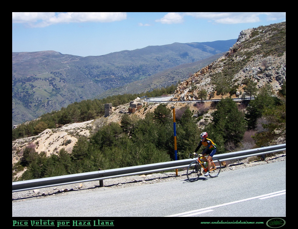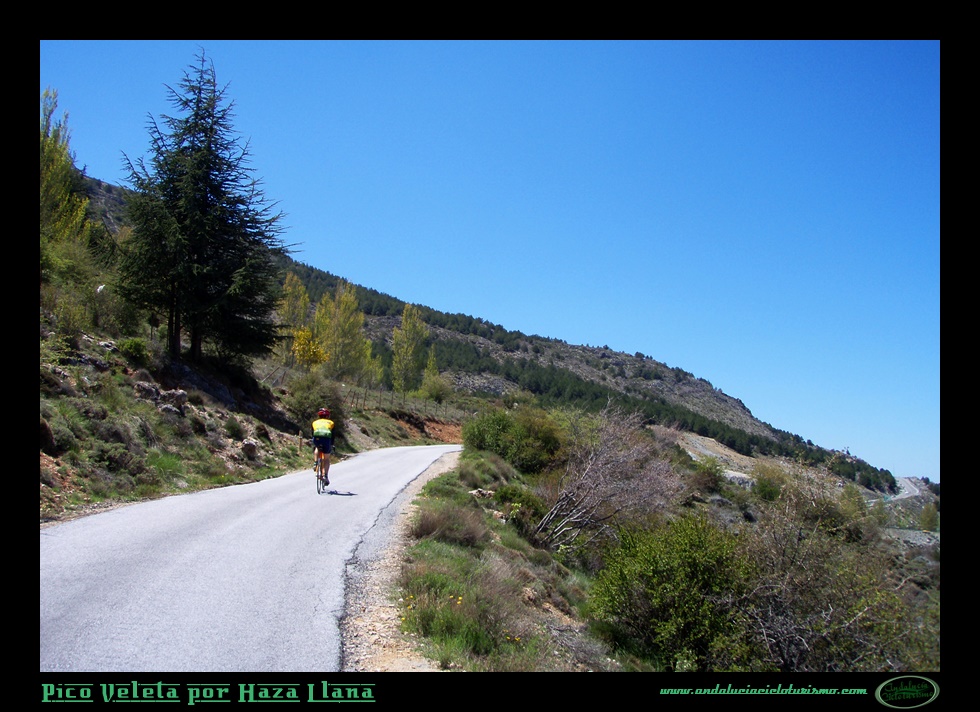 Un descansillo nos va a permitir hidratarnos y oxigenar la musculatura para afrontar las rampas que se presentan, amenazantes, ante nuestros ojos: pocas veces se situará la pendiente por debajo del 12% durante los próximos 2,5 km. A unos 2 km. del cruce la carretera deja de serpentear momentáneamente para ascender hacia el cortijo de Haza Llana siguiendo rumbo Este. Verdaderamente hay rectas demoledoras en este punto, aunque la pendiente irá decreciendo de manera casi imperceptible.