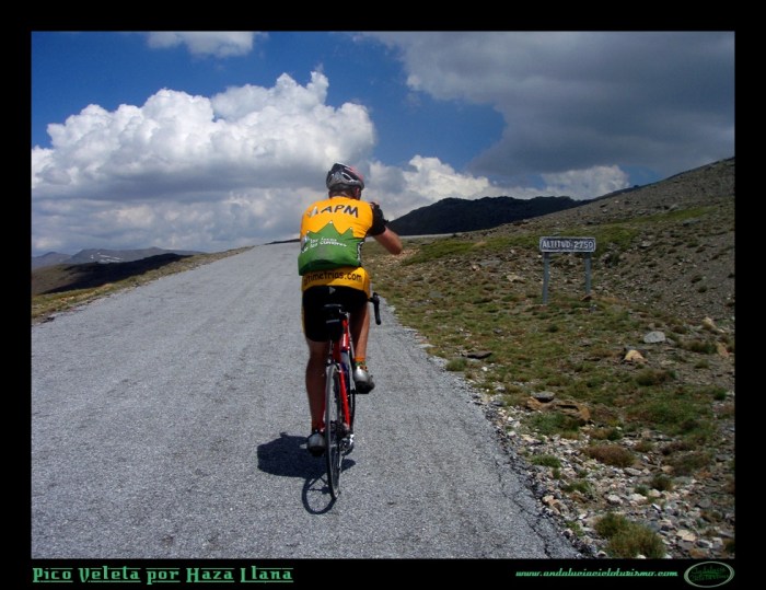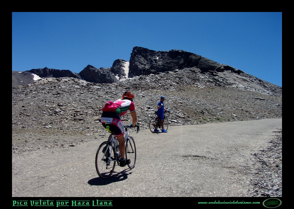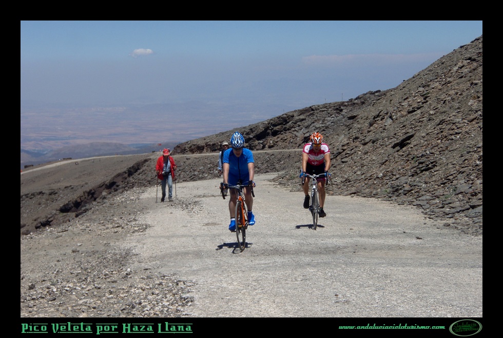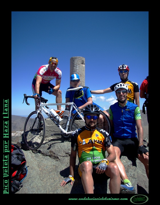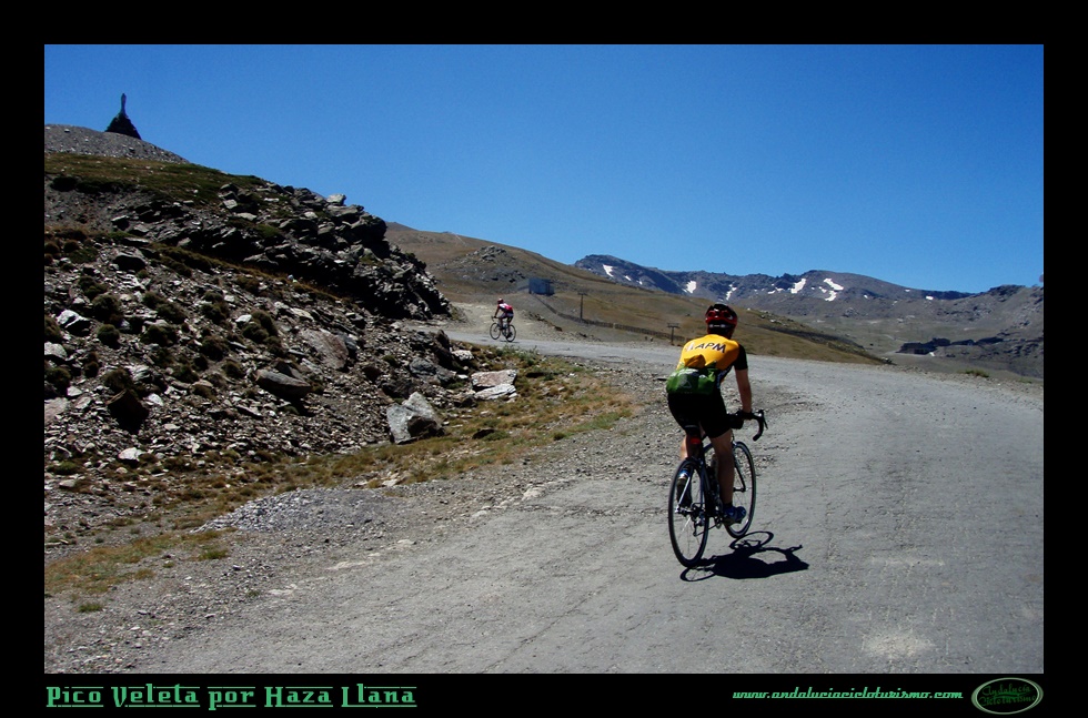 Desde la infancia hasta hoy, ha sido una montaña que ha llamado poderosamente nuestra atención. La primera ocasión en que uno de nosotros holló su cumbre fue a pie, antes de hacerlo varias veces en bicicleta por la clásica vertiente de Pinos Genil. Más tarde, una vez que desarrollamos esta pasión por los puertos, no podíamos dejar de dirigir nuestras miradas a la carretera asfaltada más alta de Europa. Así fue como en septiembre de 2008, tras un inolvidable y eterno ascenso por El Purche, Sabinas y Pradollano, compartimos por primera vez esa indescriptible sensación que se experimenta al doblegar este puerto único en Europa. Desde entonces, varias son las ocasiones en que hemos vuelto por allí, aunque en muchas no hayamos llegado a hacer cumbre. En todas, hemos experimentado grandes momentos acompañados de buenos amigos a los que -desde estas líneas y con esta entrada- queremos rendir un humilde homenaje. Lo mejor de un gran reto es sin lugar a dudas compartirlo con buena gente. A todos, también, vaya nuestro más sincero agradecimiento.