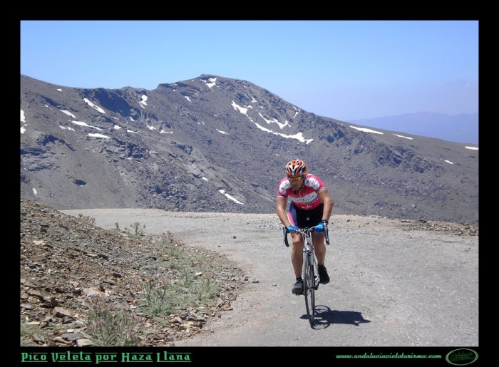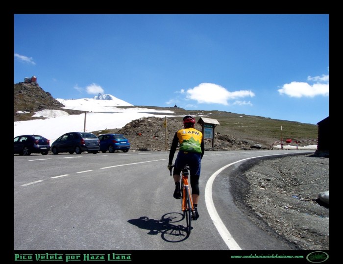 Desde la infancia hasta hoy, ha sido una montaña que ha llamado poderosamente nuestra atención. La primera ocasión en que uno de nosotros holló su cumbre fue a pie, antes de hacerlo varias veces en bicicleta por la clásica vertiente de Pinos Genil. Más tarde, una vez que desarrollamos esta pasión por los puertos, no podíamos dejar de dirigir nuestras miradas a la carretera asfaltada más alta de Europa. Así fue como en septiembre de 2008, tras un inolvidable y eterno ascenso por El Purche, Sabinas y Pradollano, compartimos por primera vez esa indescriptible sensación que se experimenta al doblegar este puerto único en Europa. Desde entonces, varias son las ocasiones en que hemos vuelto por allí, aunque en muchas no hayamos llegado a hacer cumbre. En todas, hemos experimentado grandes momentos acompañados de buenos amigos a los que -desde estas líneas y con esta entrada- queremos rendir un humilde homenaje. Lo mejor de un gran reto es sin lugar a dudas compartirlo con buena gente. A todos, también, vaya nuestro más sincero agradecimiento.