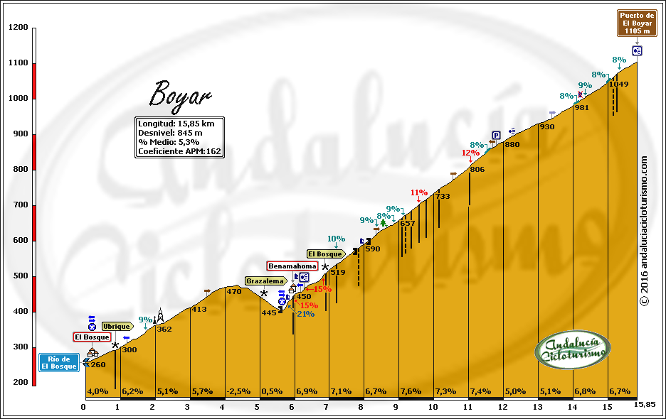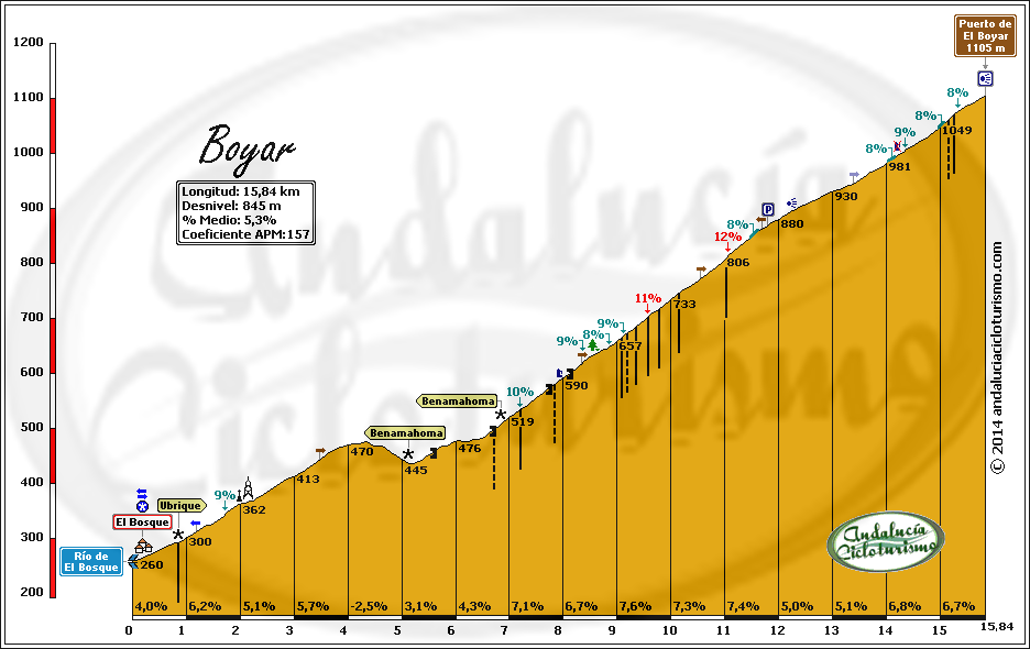 Que estemos hablando de uno de los puertos más representativos de la provincia de Cádiz posiblemente no diga gran cosa a quienes no han tenido la suerte de recorrerla; que afirmemos que son muchos los que consideran que está por encima de su vecino puerto de las Palomas, tal vez sólo nos sirva para que quienes conocen éste último decidan prestarnos atención; en cualquier caso, si alguna vez nos han concedido algo de crédito a raíz de nuestros comentarios, estamos seguros de que no desatenderán este consejo bienintencionado: el puerto de El Boyar es una de esas subidas imprescindibles.