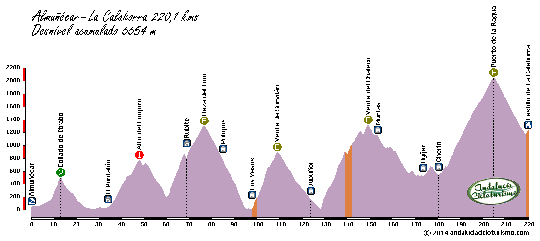 Concluir en su cima, en la pequeña Estación de Esquí de Fondo de la Ragua, es una buena opción por aquello de la promoción turística y la comodidad logística. Además, ahí la etapa se quedaría en 205 km. prácticamente. Es decir, tampoco estaríamos hablando de una kilometrada de otra época.