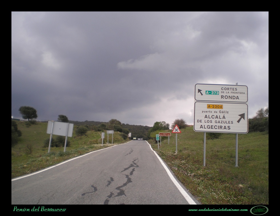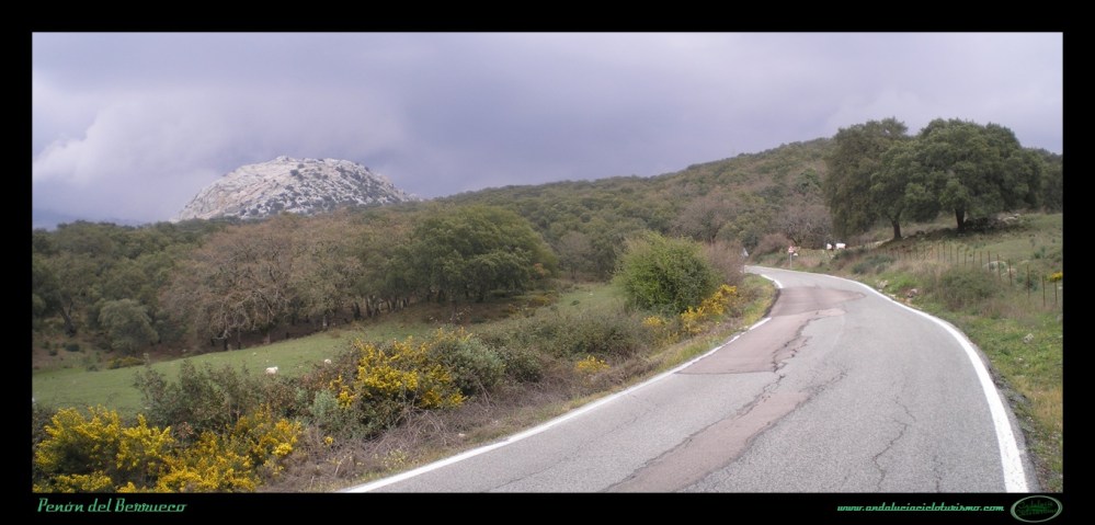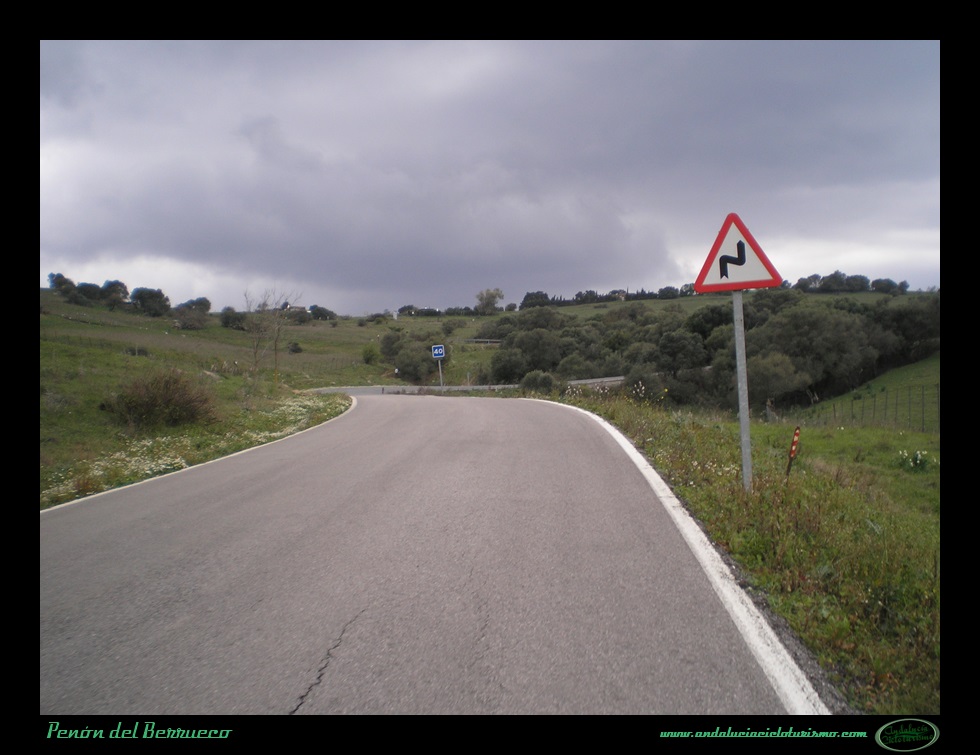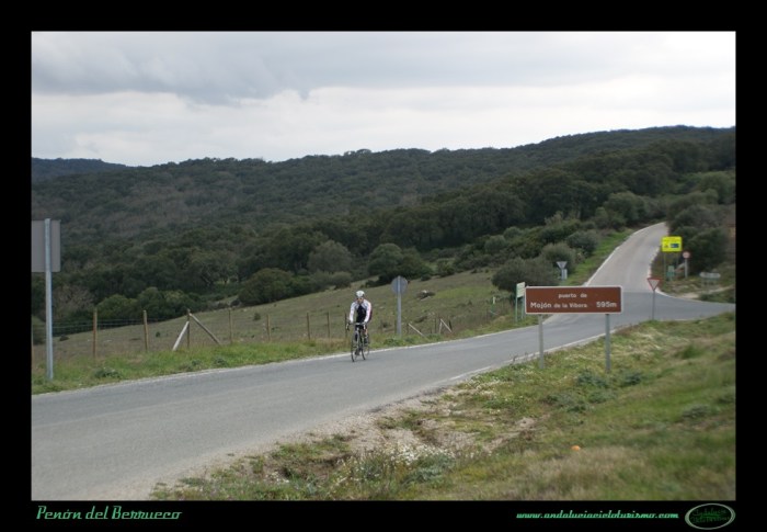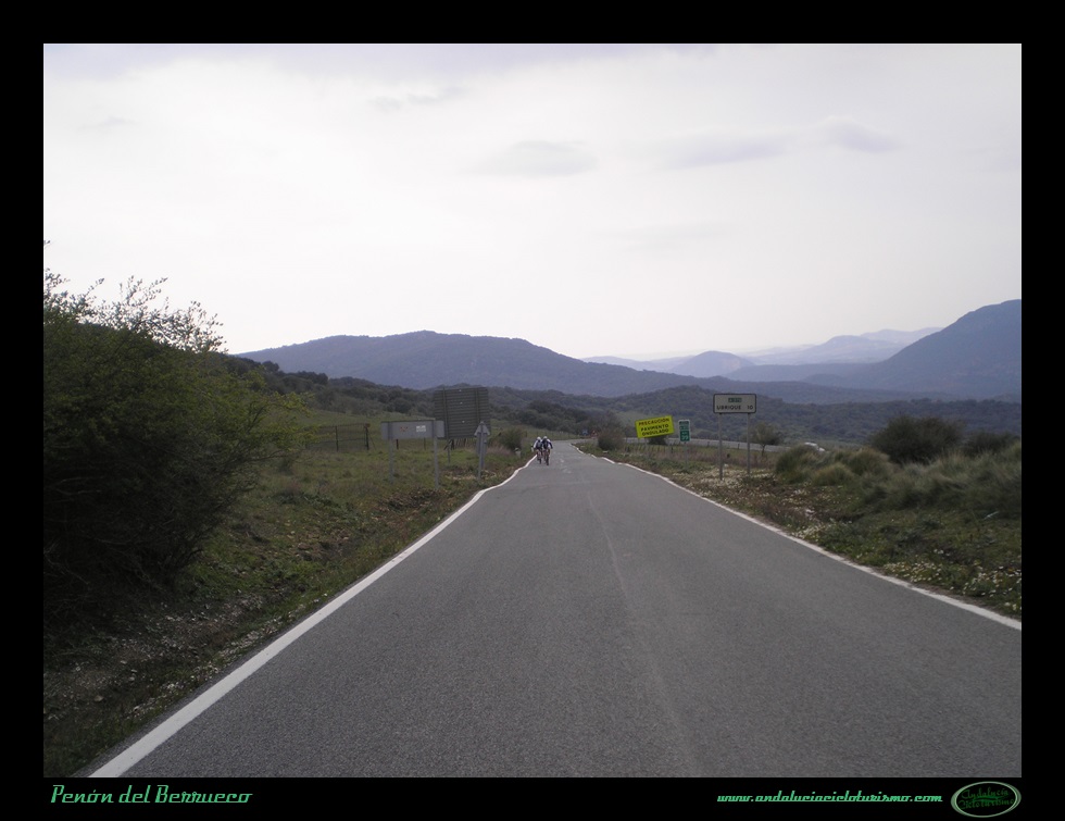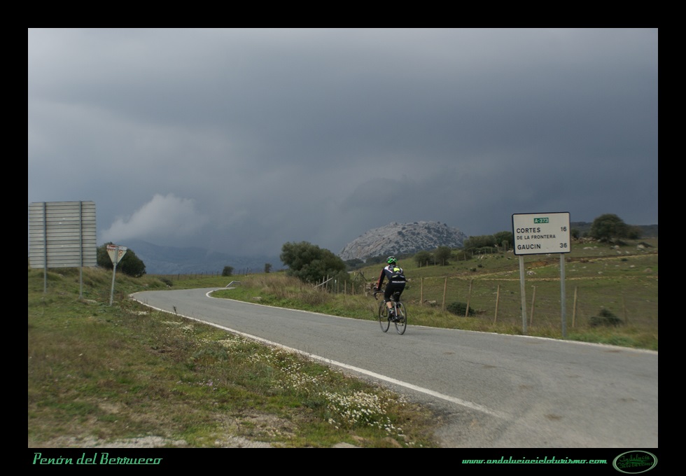 Tras la foto de rigor junto al cartel, seguimos en dirección a Cortes de la Frontera para continuar el ascenso hasta la base del Peñón del Berrueco, justo donde se encuentra el límite entre las provincias de Cádiz -por la que pedaleamos- y de Málaga.