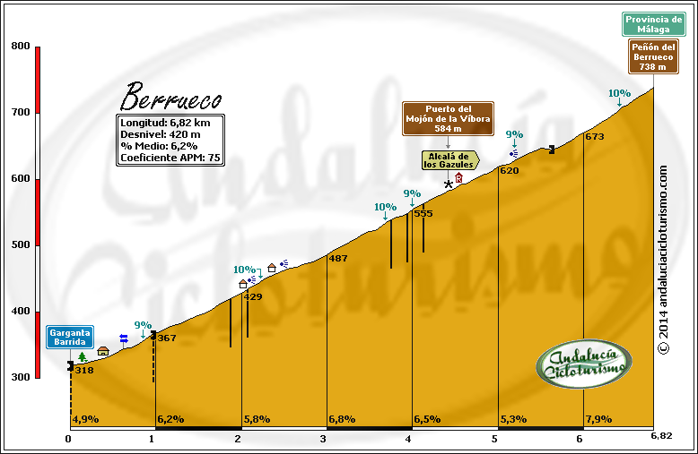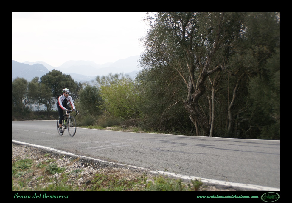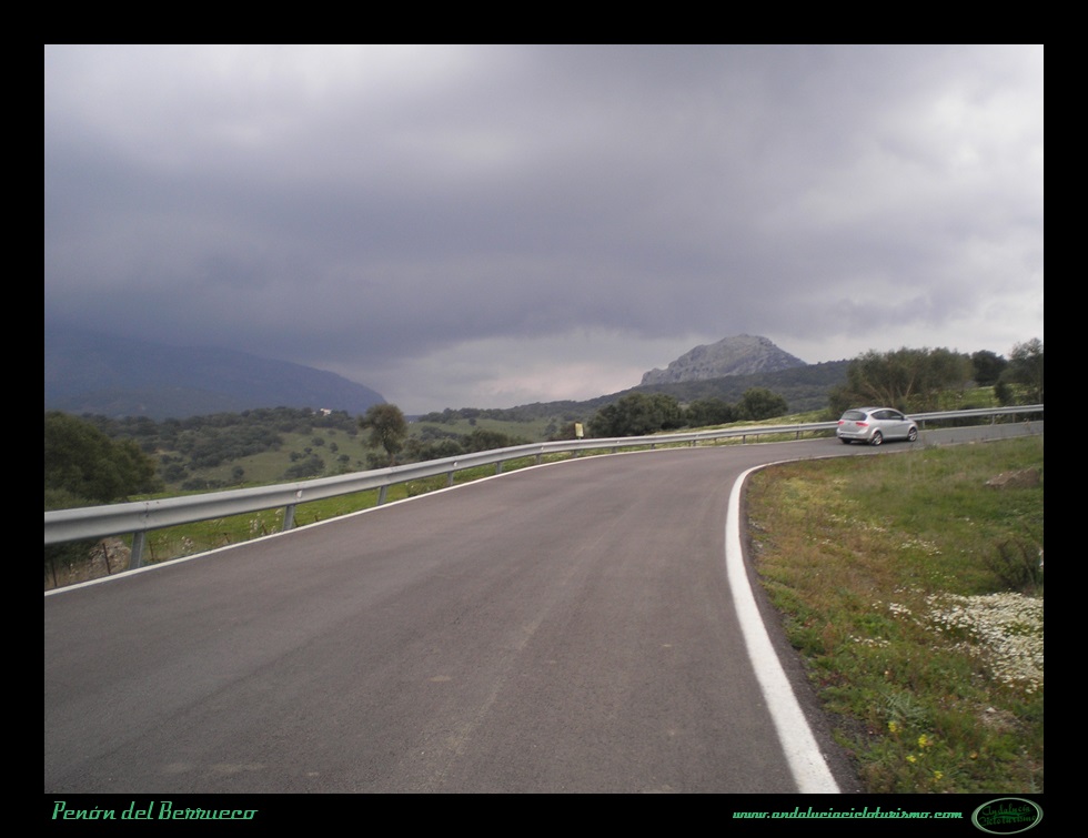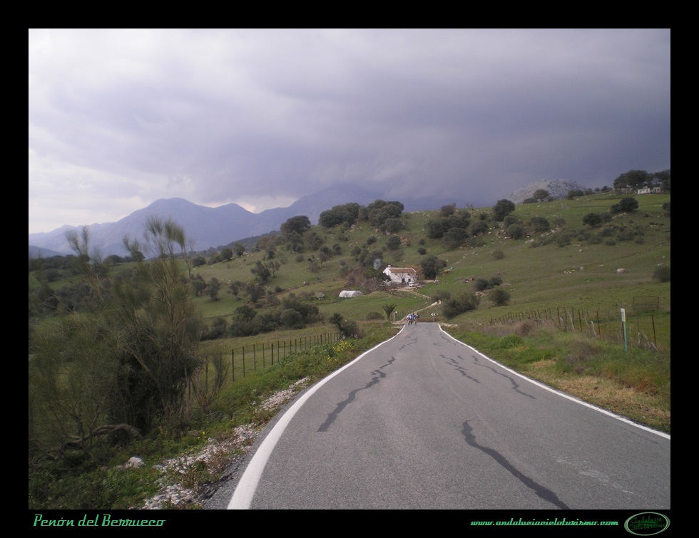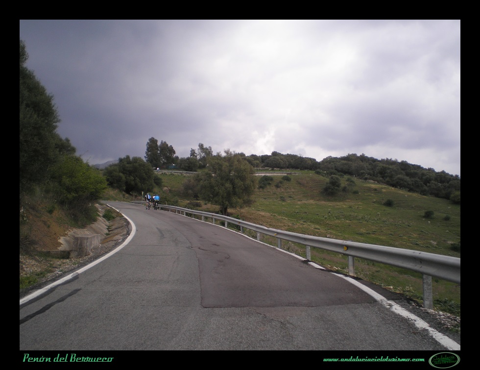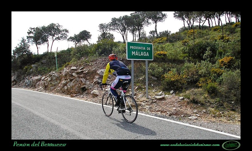 Tras la foto de rigor junto al cartel, seguimos en dirección a Cortes de la Frontera para continuar el ascenso hasta la base del Peñón del Berrueco, justo donde se encuentra el límite entre las provincias de Cádiz -por la que pedaleamos- y de Málaga.