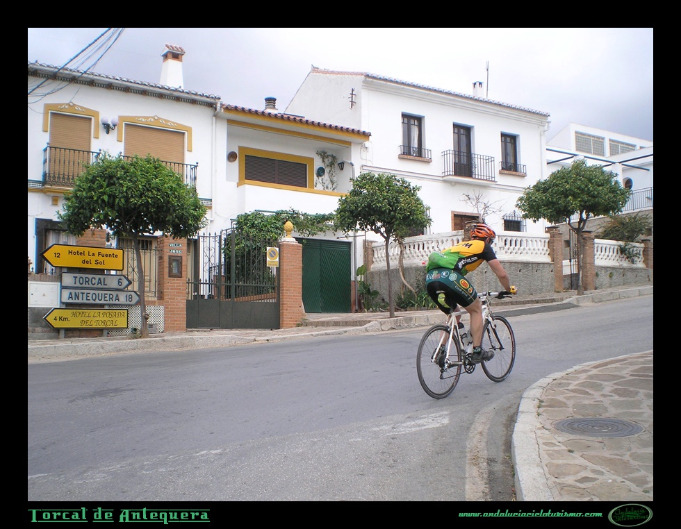 Dejando a nuestra derecha el cruce de hacia Puerto del Barco y en ligero ascenso de la pendiente, atravesamos una población que, aunque conserva ciertas características típicas de los pueblos blancos andaluces, denota en la distribución del conjunto urbano (carente del característico desorden de callejones intrincados y sin salida) su origen reciente, de finales del S. XIX concretamente. Falto de ese peculiar encanto de otras poblaciones, la villa lo compensa con creces merced a un emplazamiento de privilegio en las faldas del Torcal y con una magnífica panorámica de los Montes, las sierras vecinas y, por donde las lomas menguan su altura, del Mediterráneo en los días despejados.
