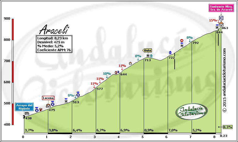 Como puede observarse en su altigrafía no se trata de ningún coloso, antes bien, es un simple puerto de segunda y, además, tampoco está escondido, sino que resulta de sobras conocido por los cicloturistas cordobeses y por los ciclistas profesionales que, en alguna ocasión, han probado sus rampas.