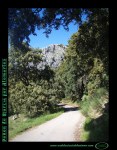 Un cruce en el collado nos lleva hasta la misma base del Peñón de Murcia (en primer plano). Al fondo una antena marca la posición del Pico del Morrón, cumbre de la Sierra de Parapanda.