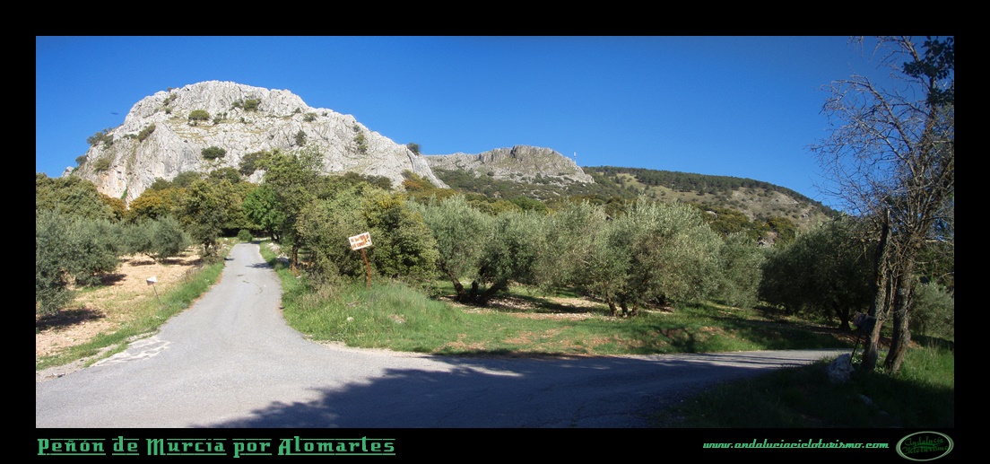 En una encrucijada ganamos el collado y tomamos la carretera que continúa a nuestra derecha para alcanzar la base del Peñón de Murcia, cuyas paredes rocosas venimos observando desde varios cientos de metros atrás. No obstante, apenas subiremos unos cuantos metros más hasta llegar al final del asfalto, hito más alto que encontramos, para retroceder nuevamente hasta el cruce, punto desde el que podremos seguir nuestro camino en dirección a Montefrío.