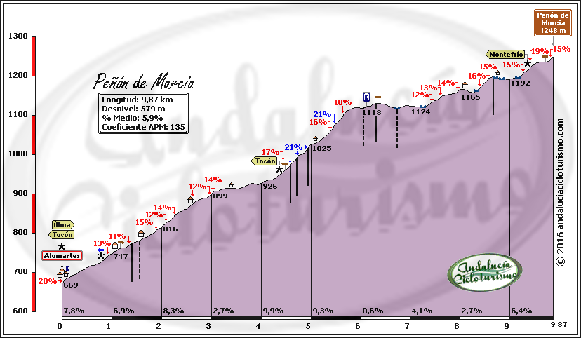 Consejos y sugerencias: las faldas de la Sierra de Parapanda son recorridas por varias carreteras que permiten hacer una ruta circular más que interesante y ello, además, incluyendo las visitas a los sitios de Montefrío, Íllora o la propia pedanía de Alomartes. Aunque globalmente no cuente con grandes números, mucho ojo porque hay kilómetros y rampas de bastante entidad en este ascenso.