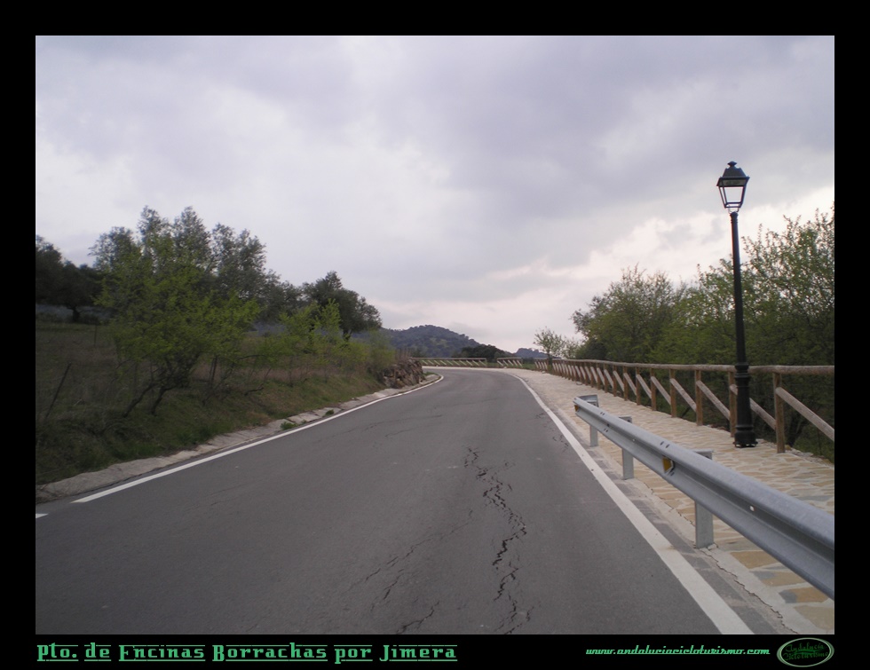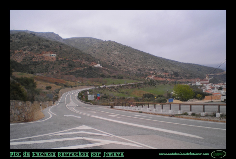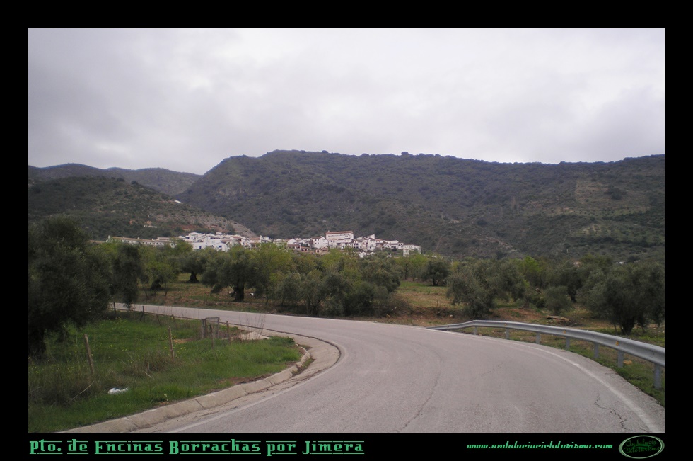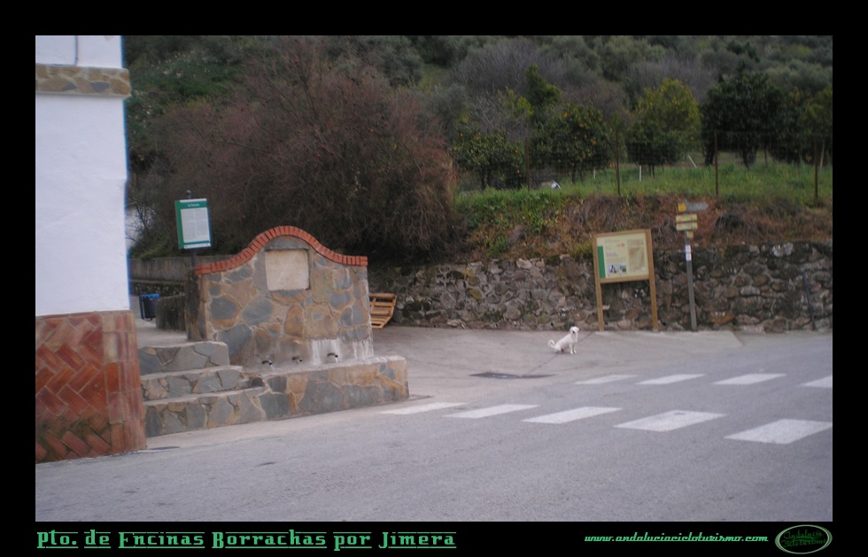 La carretera, estrecha, serpentea a los pies de la población para dejarla a un lado, concretamente a la izquierda en el sentido de nuestra marcha. Una fuente, adosada a una vivienda en las afueras, será lo más cerca que transitemos de Jimera, población típicamente serrana de esas que llaman “pueblos blancos” y que hunden sus raíces en tiempos de los moros.