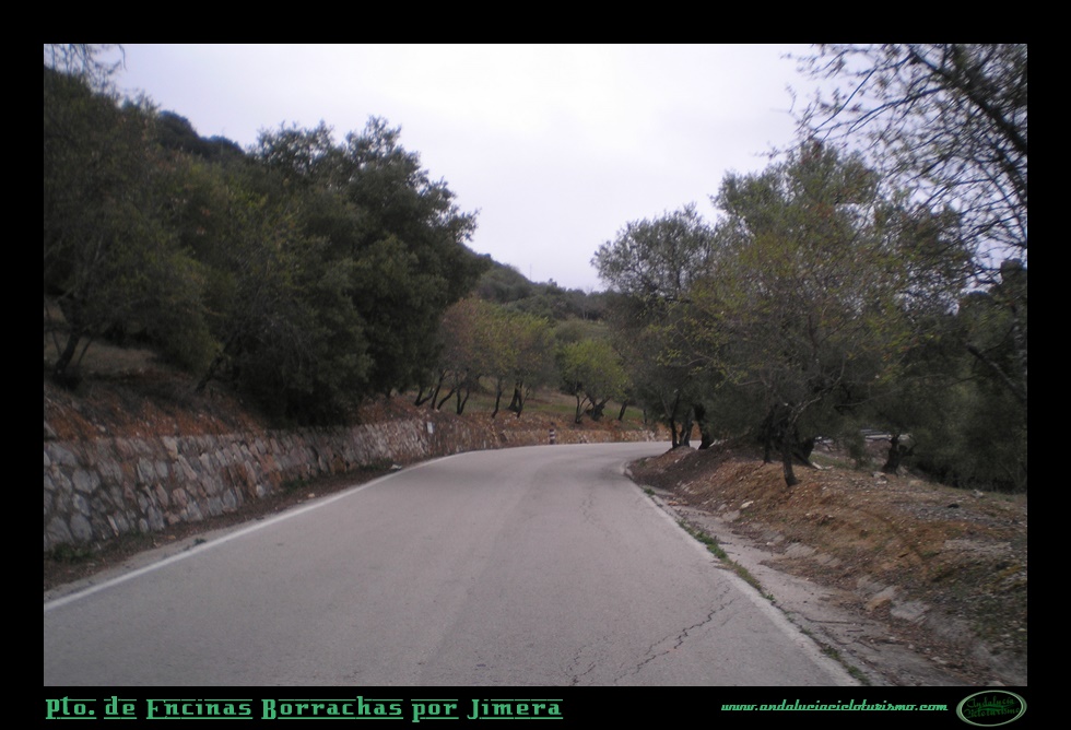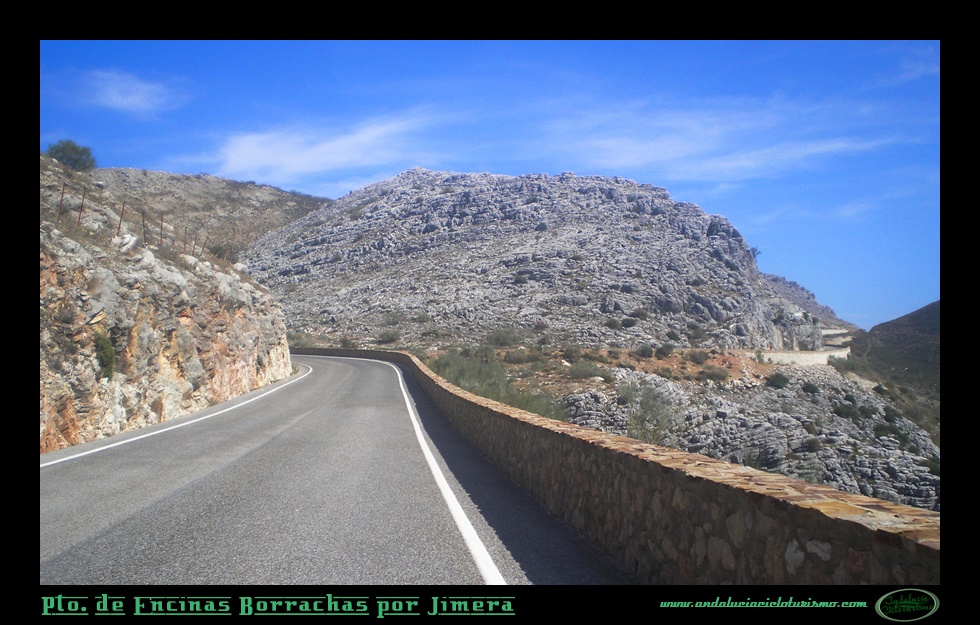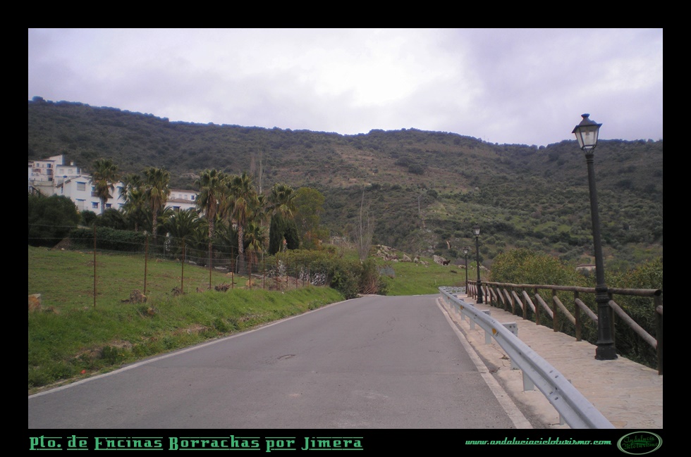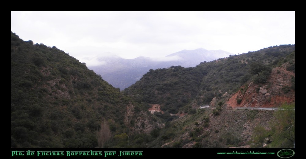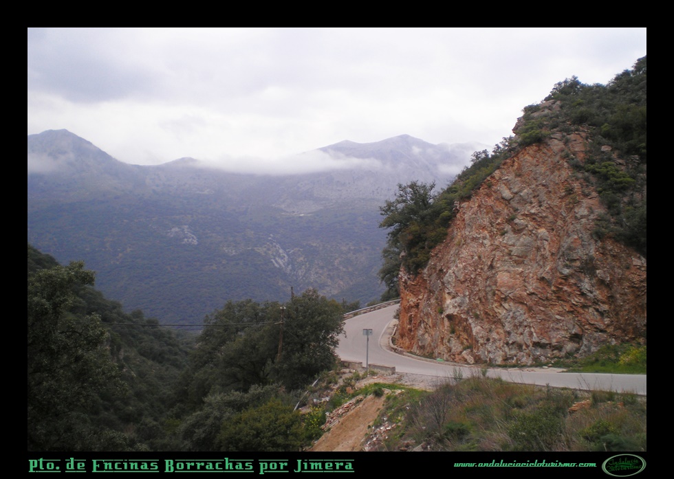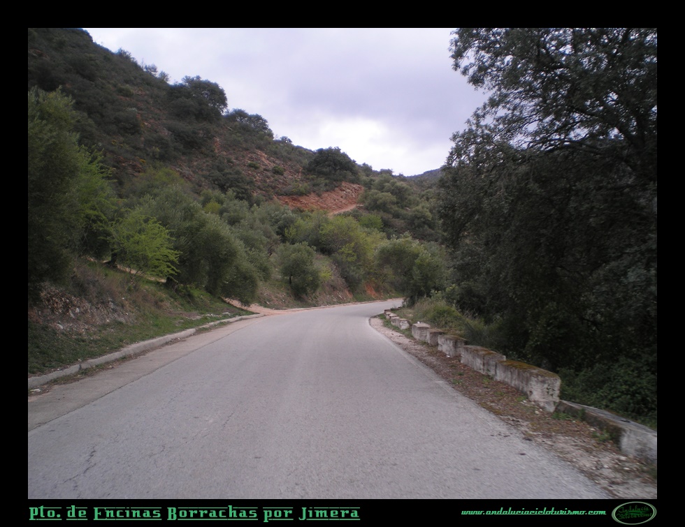 Concluimos, por último, con un par de curiosidades más sobre el puerto. En primer lugar intentaremos dar cuenta de su peculiar nombre, Encinas Borrachas, que parece responder a la antigua existencia en el lugar de un encinar, hoy desaparecido por la mano del hombre, cuyas encinas, probablemente por efecto del viento, se inclinaban dobladas –como borrachas- hacia un lado o bien a que –lo dejamos a elección del lector- el viajante llegaba a su cima tan mareado por las curvas que veía las encinas tambalearse; en segundo lugar hay que explicar por qué motivo la cima del puerto no está en la parte más alta como suele ser habitual, sino un poco más abajo. Pues bien, parece que la antigua vía hasta Acinipo, situada al noroeste de Arunda (Ronda), seguía un trazado distinto del actual, de modo que al coronar el puerto continuaba recto por el llamado llano de Encinas Borrachas (que se inicia donde se corona el paso natural), mientras que en la actualidad la carretera realiza un giro a la derecha y sigue subiendo un leve tramo, para después girar a la izquierda y descender hasta Ronda.