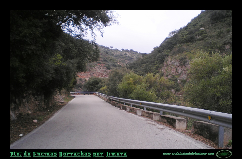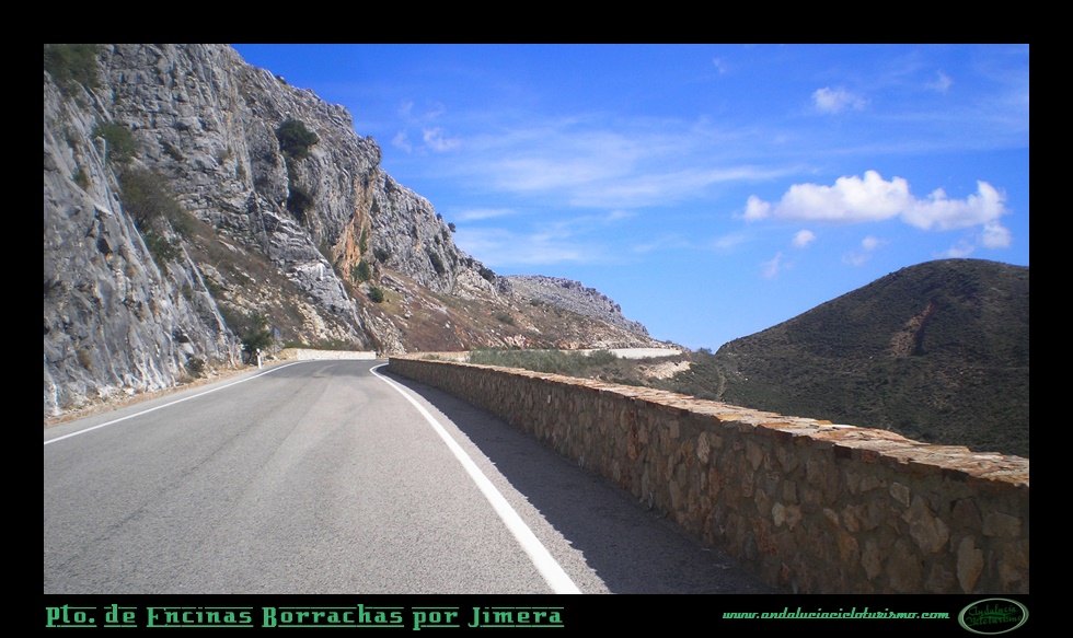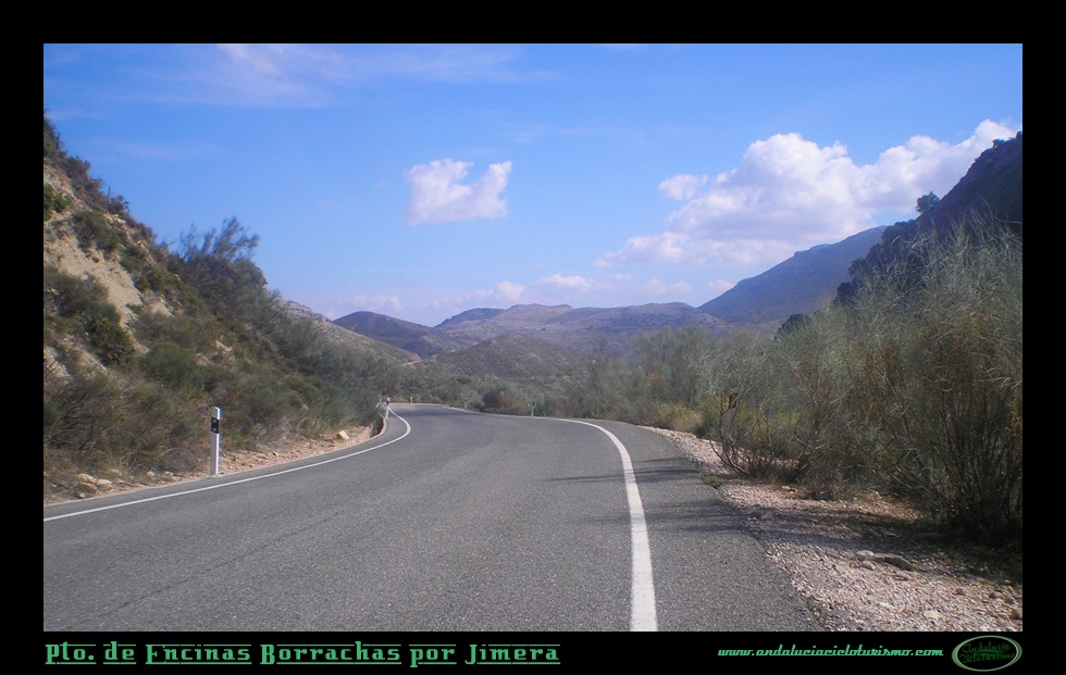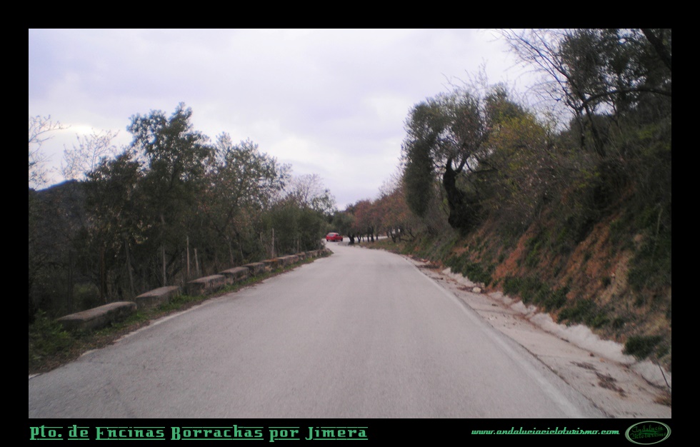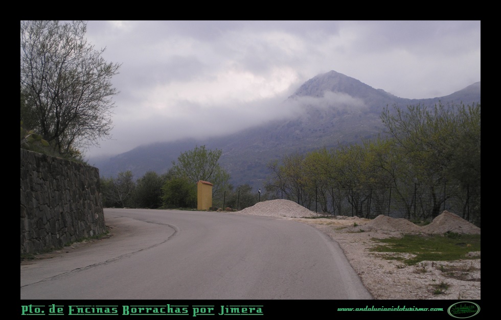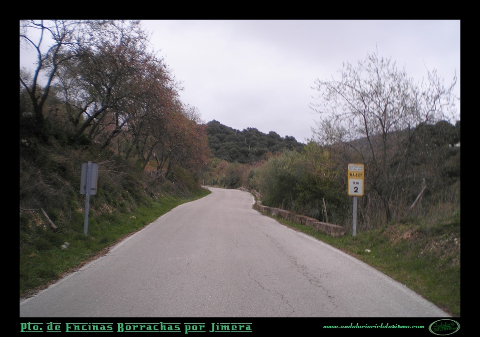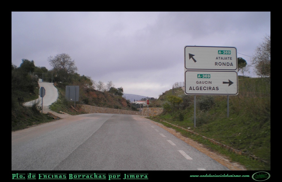 Concluimos, por último, con un par de curiosidades más sobre el puerto. En primer lugar intentaremos dar cuenta de su peculiar nombre, Encinas Borrachas, que parece responder a la antigua existencia en el lugar de un encinar, hoy desaparecido por la mano del hombre, cuyas encinas, probablemente por efecto del viento, se inclinaban dobladas –como borrachas- hacia un lado o bien a que –lo dejamos a elección del lector- el viajante llegaba a su cima tan mareado por las curvas que veía las encinas tambalearse; en segundo lugar hay que explicar por qué motivo la cima del puerto no está en la parte más alta como suele ser habitual, sino un poco más abajo. Pues bien, parece que la antigua vía hasta Acinipo, situada al noroeste de Arunda (Ronda), seguía un trazado distinto del actual, de modo que al coronar el puerto continuaba recto por el llamado llano de Encinas Borrachas (que se inicia donde se corona el paso natural), mientras que en la actualidad la carretera realiza un giro a la derecha y sigue subiendo un leve tramo, para después girar a la izquierda y descender hasta Ronda.