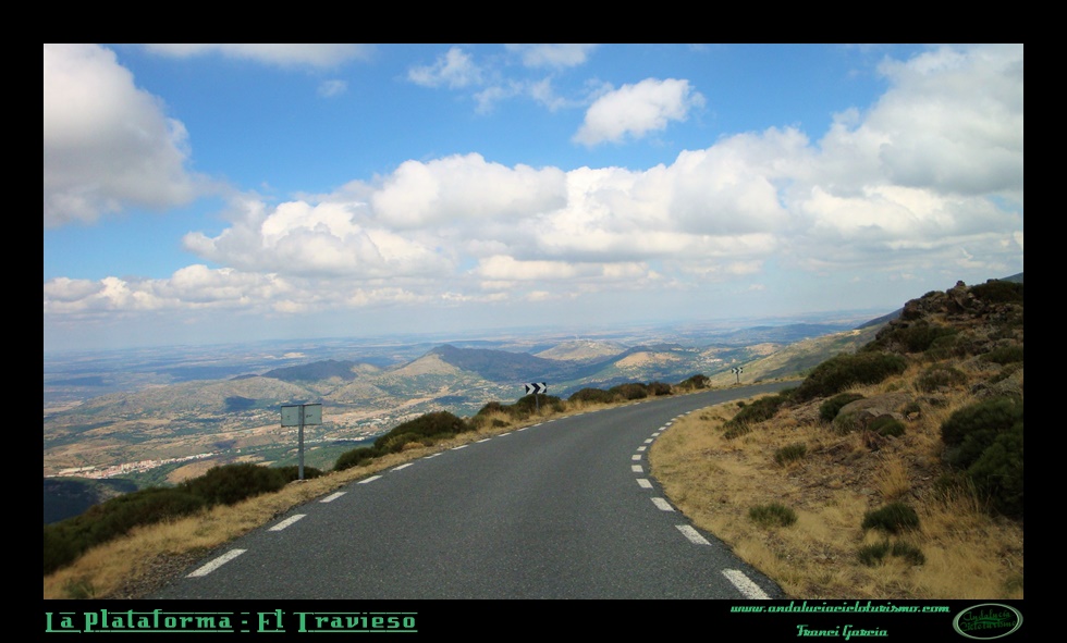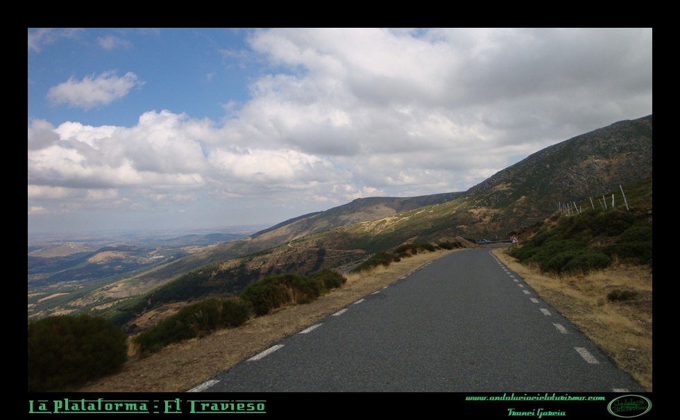Desde la Plataforma la carretera acaba por perder la vegetación y torna abierta al paisaje. Es entonces cuando gozaremos de las mejores panorámicas de todo el ascenso: a poco menos de un kilómetro para coronar nos topamos con el Mirador de la Sierra, un pequeño recodo donde podemos parar a deleitarnos con la belleza del entorno. Finalmente, coronaremos tan entusiasmados con el ascenso que nos apetecería que la carretera continuara varios miles de metros de más… Quizás sea la mejor carta de presentación para El Travieso: coronar lamentando que el puerto se acabe.
