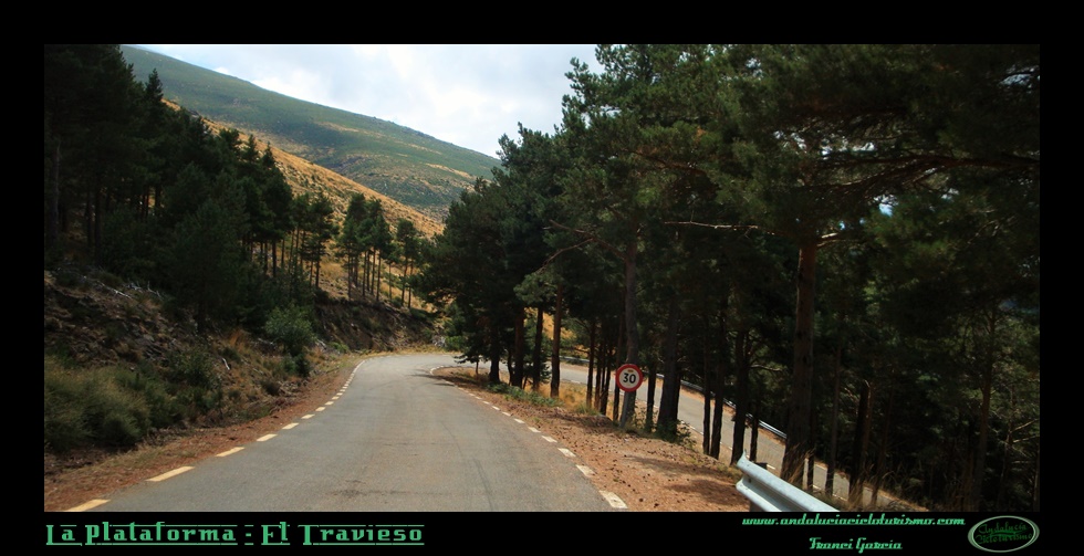 A su salida, decíamos, el ascenso gana consistencia y regularidad durante casi una decena de kilómetros hasta que se acaba la carretera a 1.854 m. de altitud. Una de las principales características del puerto es la frondosa vegetación que, formada por un pinar de reforestación, nos propiciará abundante sombra hasta la Plataforma. Además, la aparición de curvas de herradura que, poco a poco se van a ir sucediendo, y la ausencia de rampas imposibles hacen de ésta una subida muy amena y agradable para cualquier cicloturista.