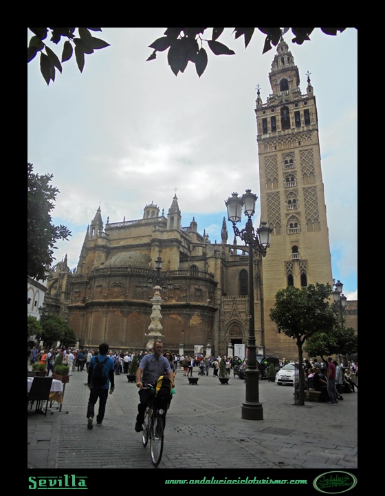 Entre estos dos edificios media una calle por la que nos vamos a introducir buscando la Plaza del Triunfo, aunque sólo sea por ver la puerta del León del Real Alcázar y el acceso a la judería, el Barrio de Santa Cruz. El primero es un conjunto de palacios y jardines amurallados de origen islámico y con elementos góticos, mudéjares, renacentistas e incluso barrocos que rivalizan con la Alhambra de Granada: su visita es, pues, obligada; la judería, por su parte, también hay que recorrerla a pie empujando la bici, pues la estrechez de sus callejuelas así lo recomiendan.