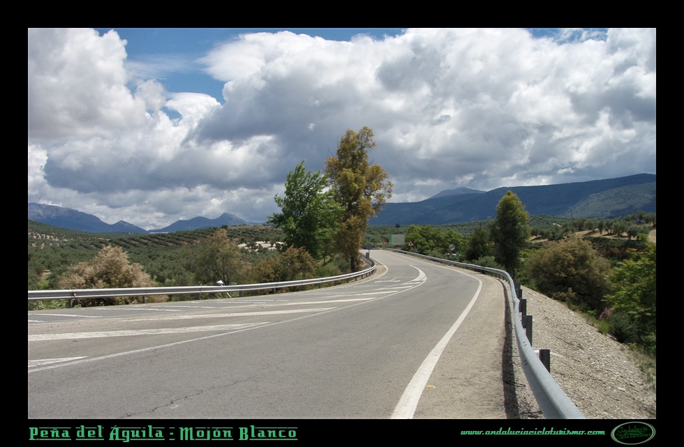Por suerte a la entrada del pueblo nos desviaremos en un cruce perfectamente señalizado en que se nos indica “Peña del Águila” y “Sierra Mágina”, por lo que no existe pérdida: sólo hay que seguir lo más recto posible.