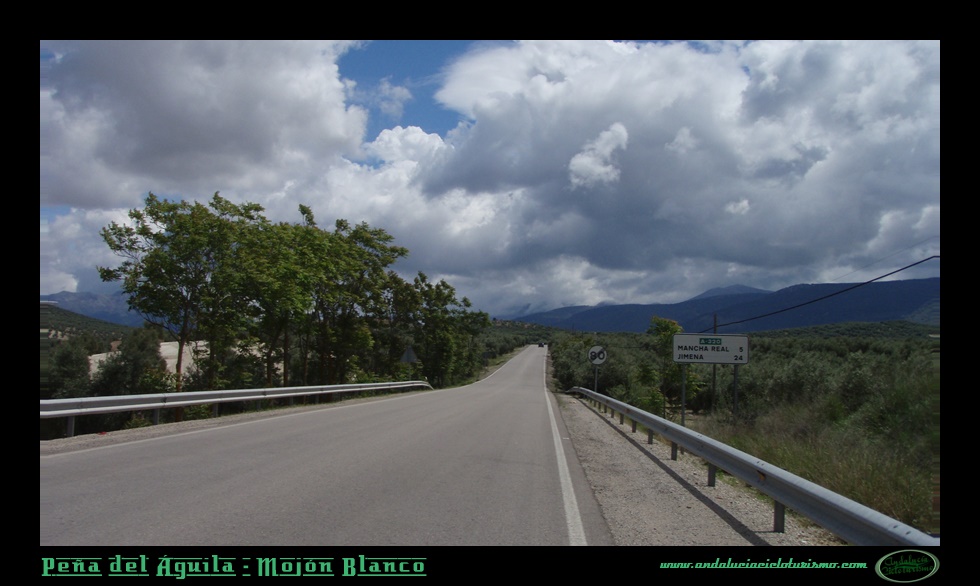 Nos encontramos a los pies de la Sierra Mágina, en concreto, en las inmediaciones de Mancha Real. Partiremos desde el cruce de las autonómicas A-320 y A-316, para subir por esta última hacia el mencionado pueblo. Atravesamos el pueblo buscando la carretera de las antenas o la que nos conduce hacia la Peña del Águila. Metidos en faena, no habrá pérdida.