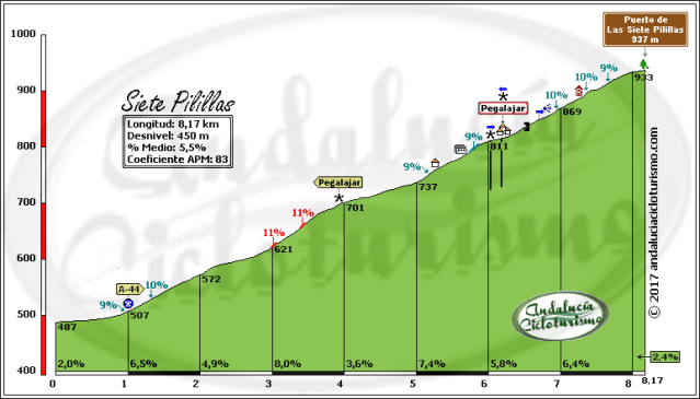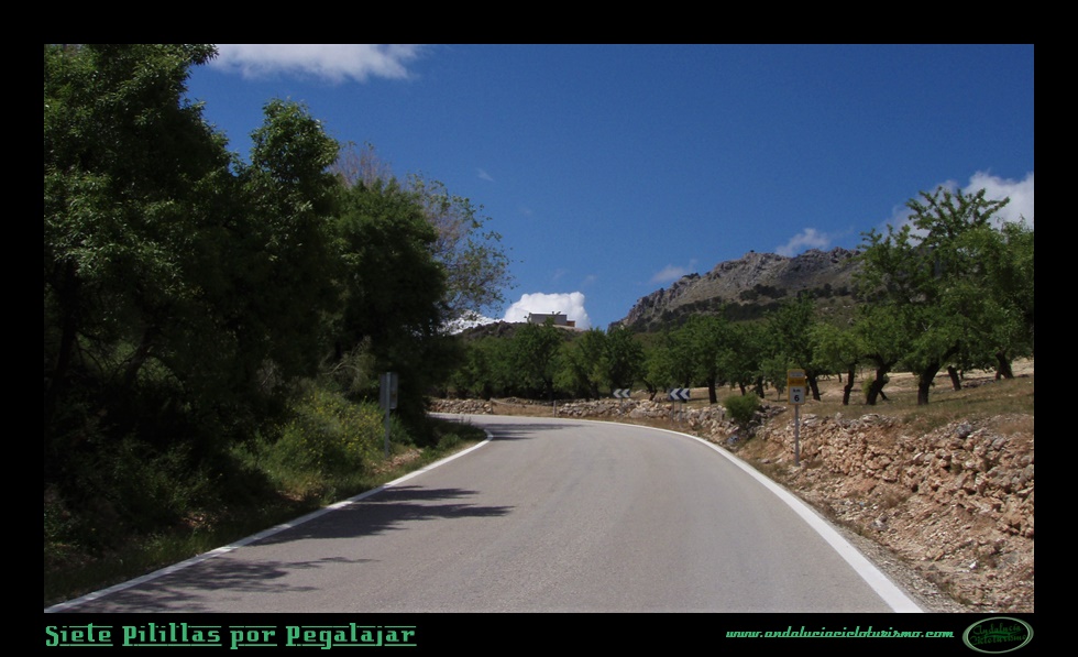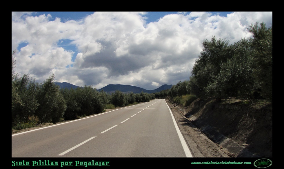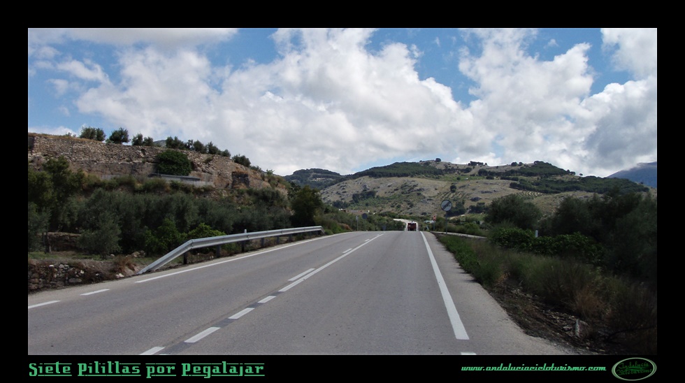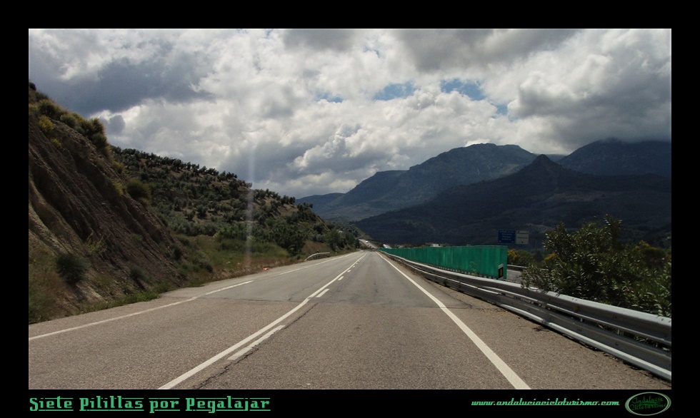 Consistirá primeramente el puerto en un falso llano rectilíneo para, al poco, romper en un fuerte repecho que nos va a situar o bien en el acceso a la autovía, o bien en el acceso al pueblo de Pegalajar, si no queremos -cual es el caso- continuar por la carretera que llevamos.