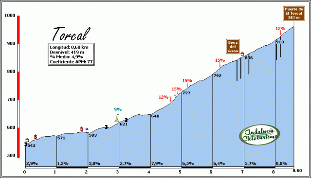 Sólo han puntuado tres puertos, pero alguno más podrían haberlo marcado, ya que a partir de El Mojón, por la Subbética cordobesa y la Sierra Sur de Jaén, no encontrarán muchos kilómetros llanos. Os dejamos los ascensos de cuyos datos disponemos: