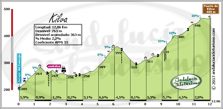 Hay que decir que no se trata de un puerto de especial belleza, todo lo contrario que su vertiente norte, que es, además, más corta, más constante y de mayor dificultad. Y es que circulamos de repecho en repecho encajonados entre lomas excepto en su últimas estribaciones, la zona alta que podría considerarse propiamente como Kilva.