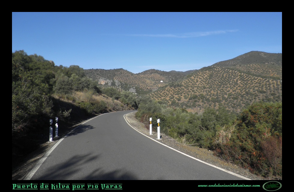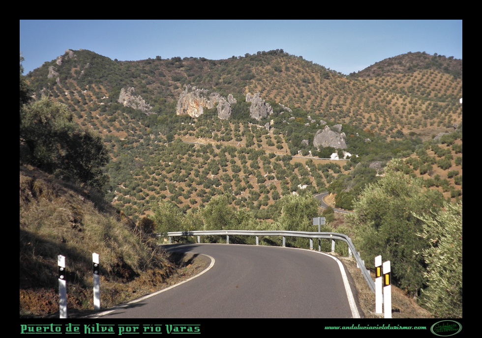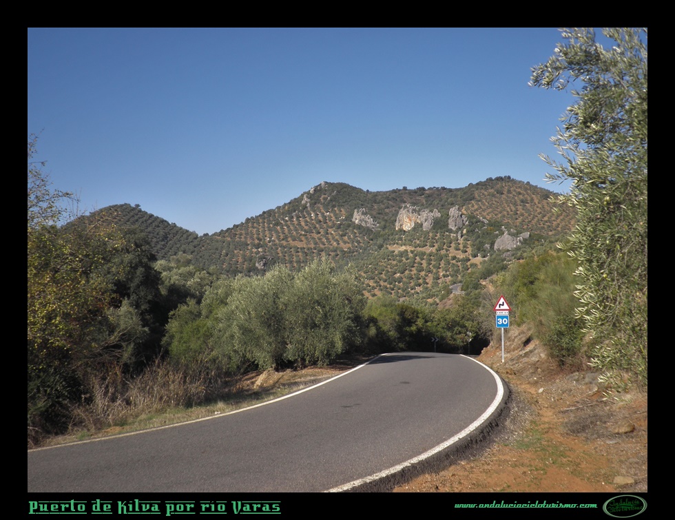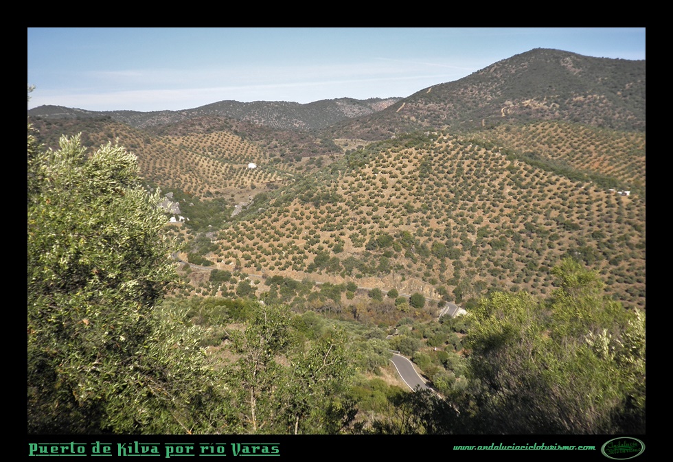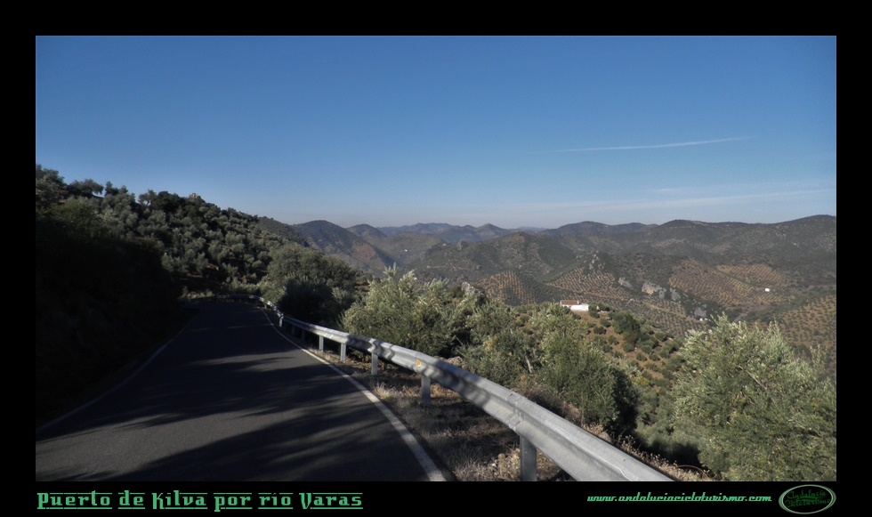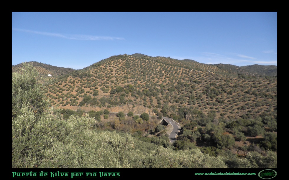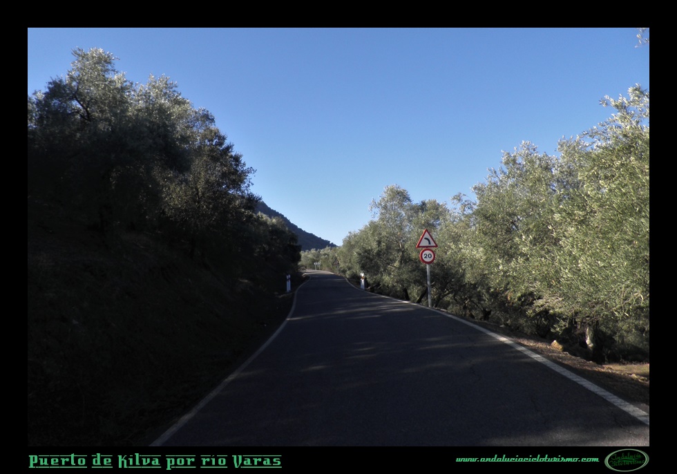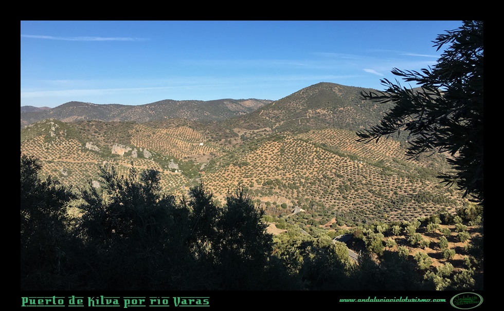 Trazamos una vaguada a derechas y con celeridad ganamos altitud sobre el río Varas, allí abajo queda la zona denominada como Pasada de las Piedras del Aire, un repecho que hemos afrontado antes de iniciar el puerto propiamente dicho. El olivar, omnipresente por toda esta parte de la sierra, cubre ambos márgenes de la carretera acompañado por matorral bajo y arbustos aromáticos.