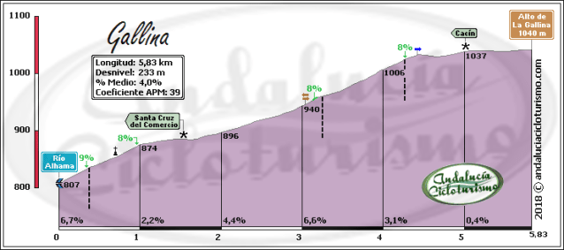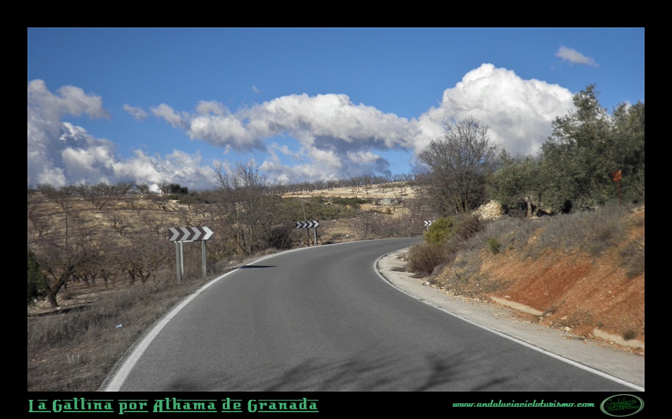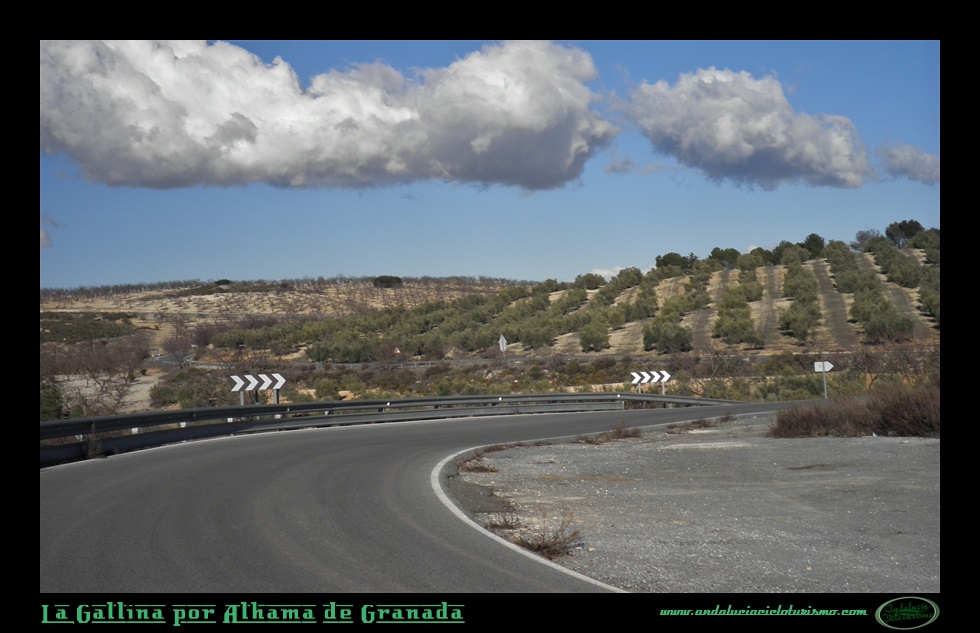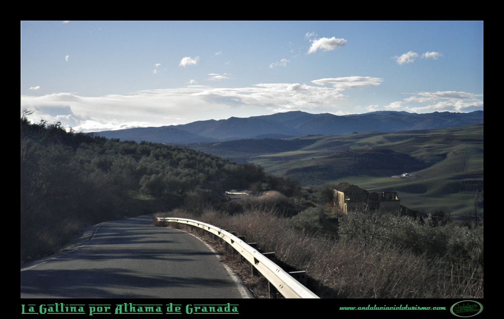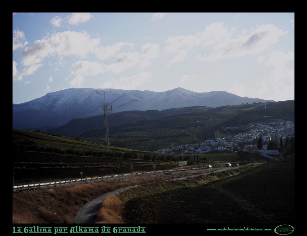 Partiendo del puente sobre el río Alhama, a los mismísimos pies de Alhama de Granada, donde un cruce nos conduce al balneario de origen romano -más tarde musulmán, como idica claramente el topónimo de la villa-, vamos a dar por iniciado el ascenso a esta pequeña cota granadina -en esta provincia estamos acostumbrados a empresas de mayor magnitud- que nos va a llevar por una carretera estrecha y recoleta camino del río Cacín, justo allí donde la presa de los Bermejales recoge sus aguas embalsándolas mansamente y allí donde mismo las vastas sierras, que reciben su nombre de la población que nos ve partir, estrechan su cauce río abajo.