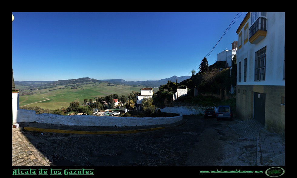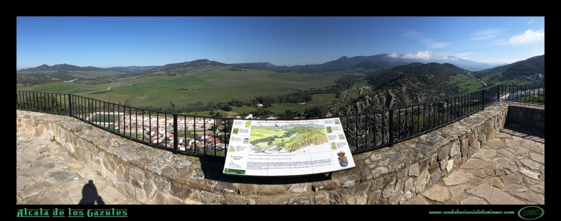 El mirador ofrece unas magníficas vistas de la Sierra de Grazalema al Fondo y de los Alcornocales, a más del valle del río Barbate.