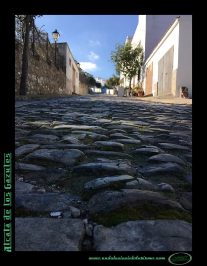 Tramo empedrado de C/San Vicente. El pavimento y la pendiente dificultan el ascenso. Con lluvia puede ser un paso complicado.