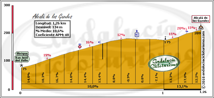 Una vez embebecidos del ambiente cultural de Alcalá de los Gazules, vamos a pasar a lo meramente ciclístico. Las características de este repecho, con cambios de asfalto y callejeo por el casco urbano, requieren del detalle pormenorizado de los mismos: