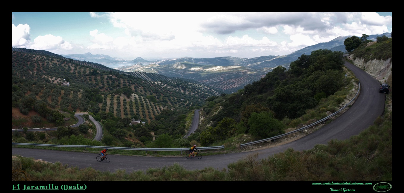 Rampas del 14% continuadas y hasta del 18% dan lugar a un largo descanso mientras que por todo paisaje disfrutaremos de un mar de olivos que se confunde, al fondo del valle, con las aguas del embalse de Iznájar, el más grande de la comunidad andaluza y uno de los mayores también de España.