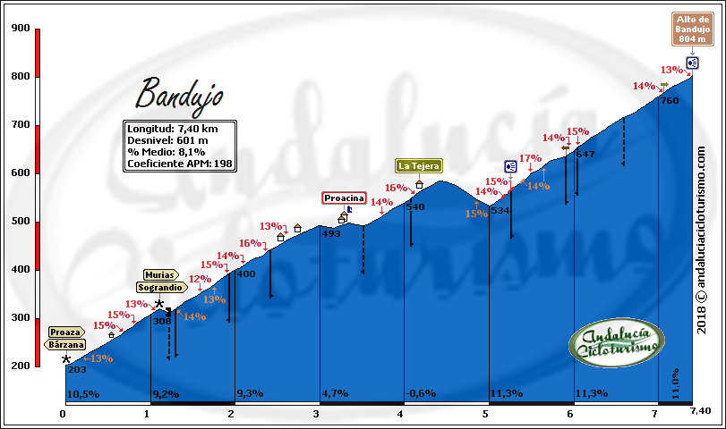 Hasta el siglo pasado Bandujo había permanecido en casi total aislamiento debido a la falta de una vía de comunicación fácil y cómoda. Hoy día, desde la llamada Senda del Oso, aún se puede acceder a pie por el antiguo camino medieval -mitad terrizo, mitad empedrado- que trepa hasta la aldea en unos dos kilómetros y medio (ni imaginar podemos las pendientes que se han de superar caminando). Dicho esto, el alto de Bandujo que nos disponemos a presentaros parecerá pese a sus varios kilómetros por encima o cercanos al 10% una bagatela en comparación. Y eso que superarlos no será asunto baladí.