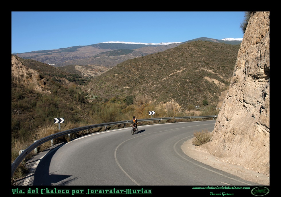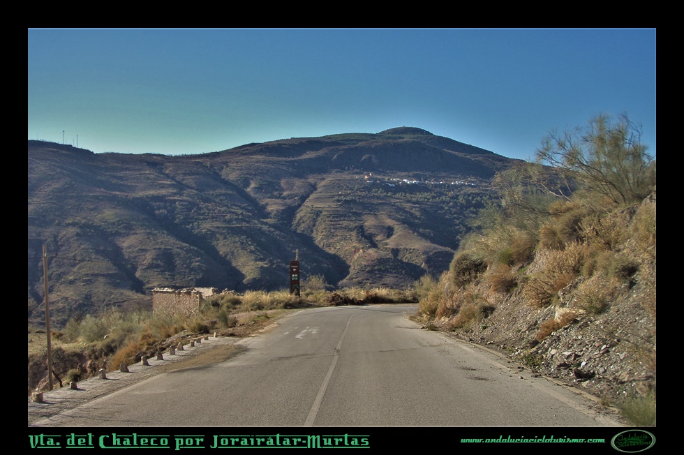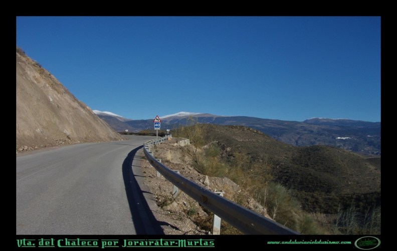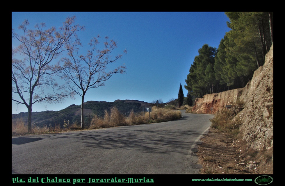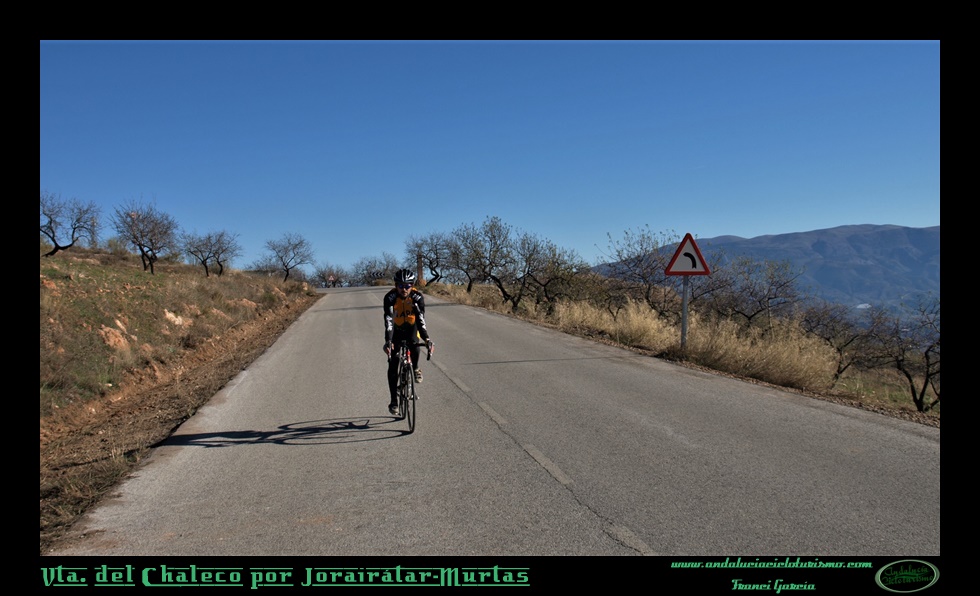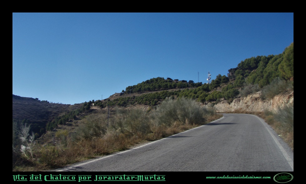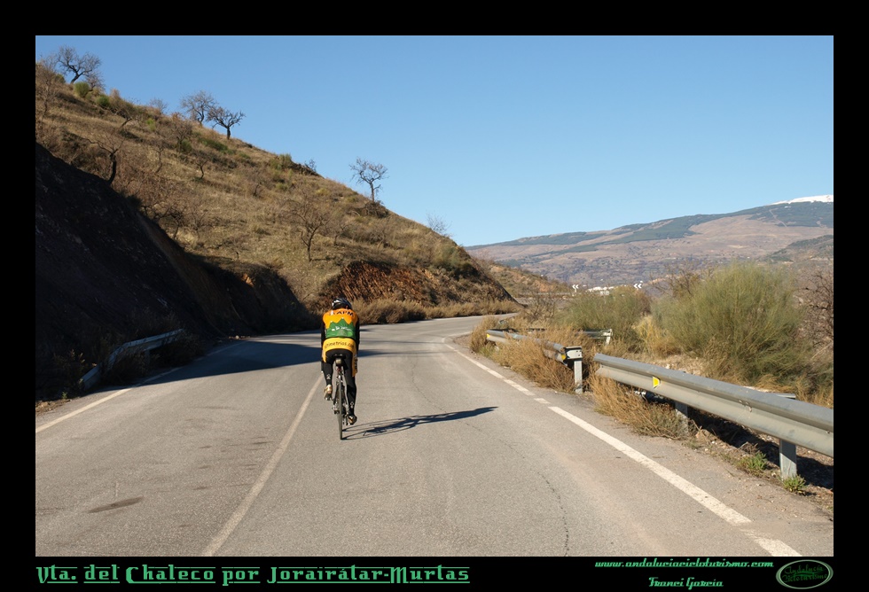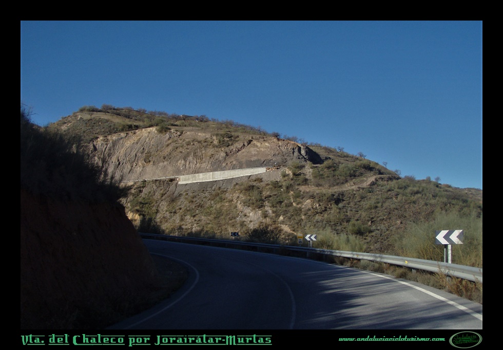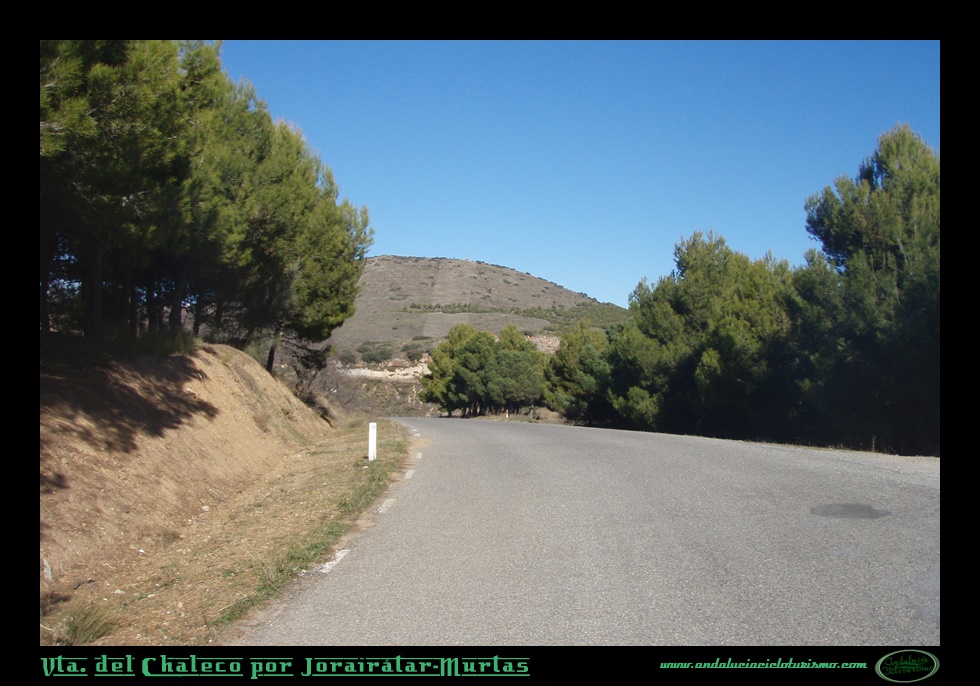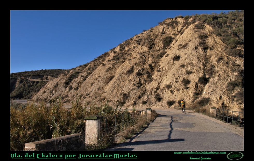 A continuación proponemos una de esas subidas irregulares, sin fuertes pendientes, pero de larga distancia, de las que merecen la primera categoría por el mero desgaste que supone su ascenso. Y eso que hemos de notar que esta vertiente de Jorairátar y Murtas que corona la Venta del Chaleco es la de menor dificultad de las tres existentes, siendo la sur la más exigente y, quizás, la del embalse de Benínar la más «cicloturista».