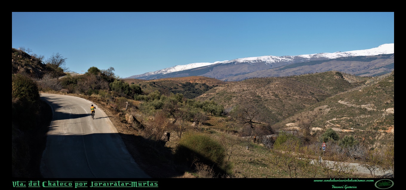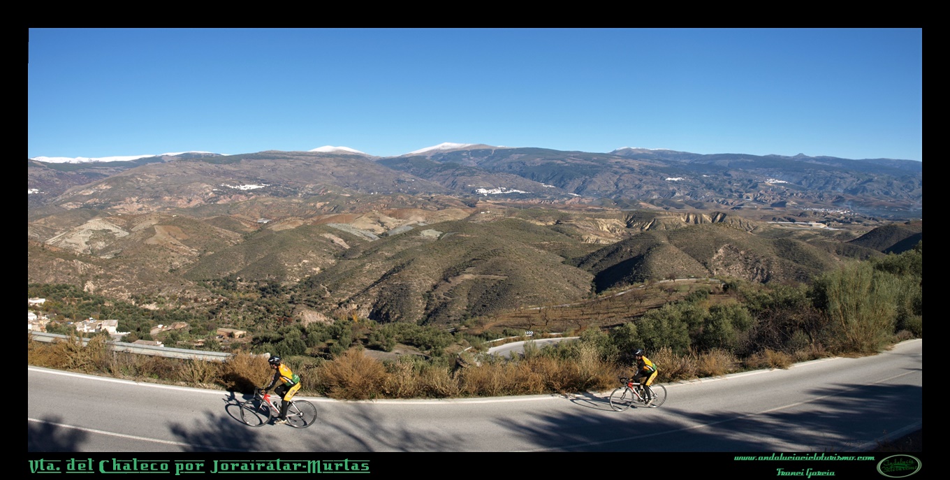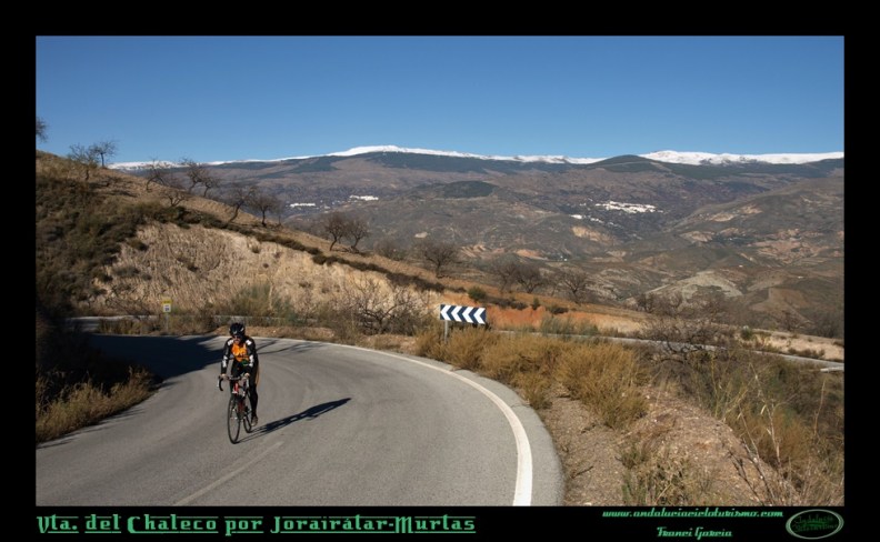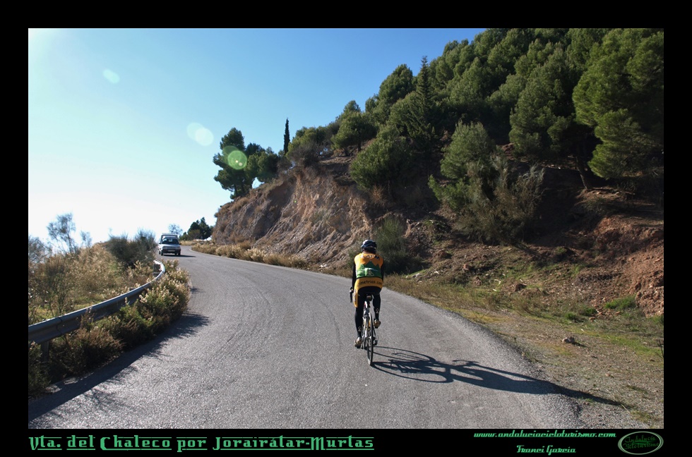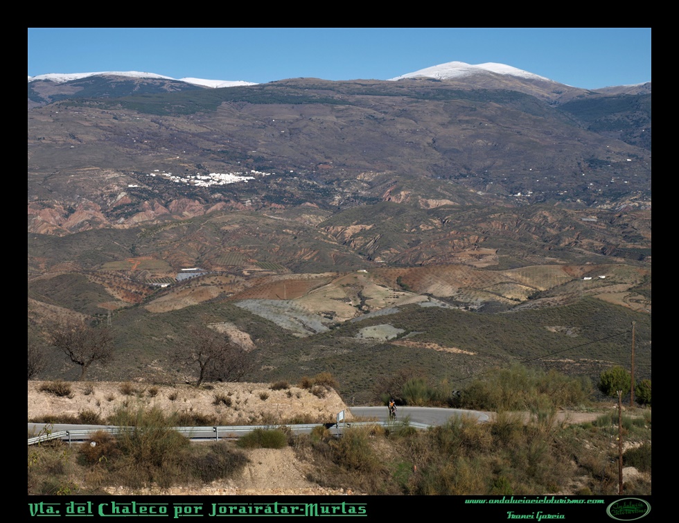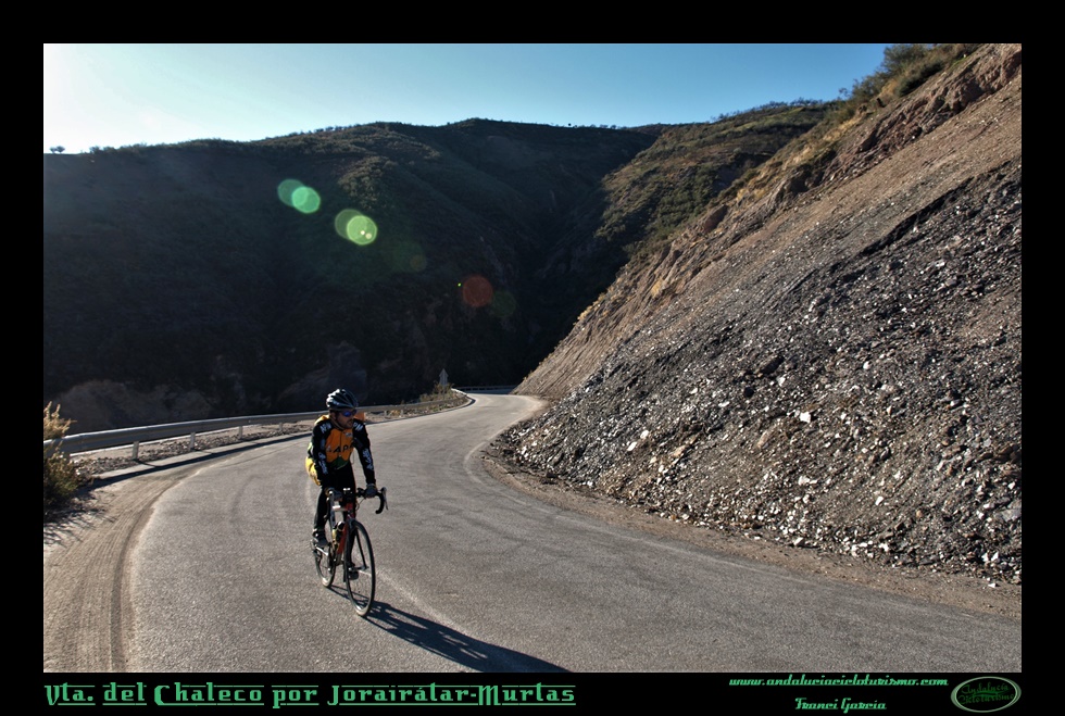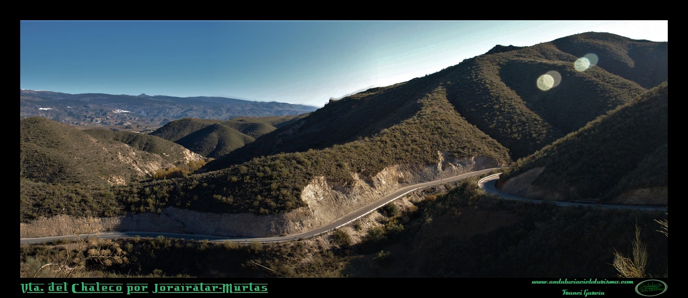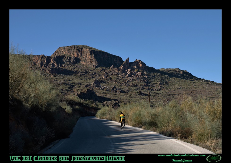 A continuación proponemos una de esas subidas irregulares, sin fuertes pendientes, pero de larga distancia, de las que merecen la primera categoría por el mero desgaste que supone su ascenso. Y eso que hemos de notar que esta vertiente de Jorairátar y Murtas que corona la Venta del Chaleco es la de menor dificultad de las tres existentes, siendo la sur la más exigente y, quizás, la del embalse de Benínar la más «cicloturista».