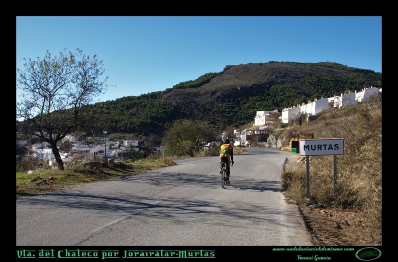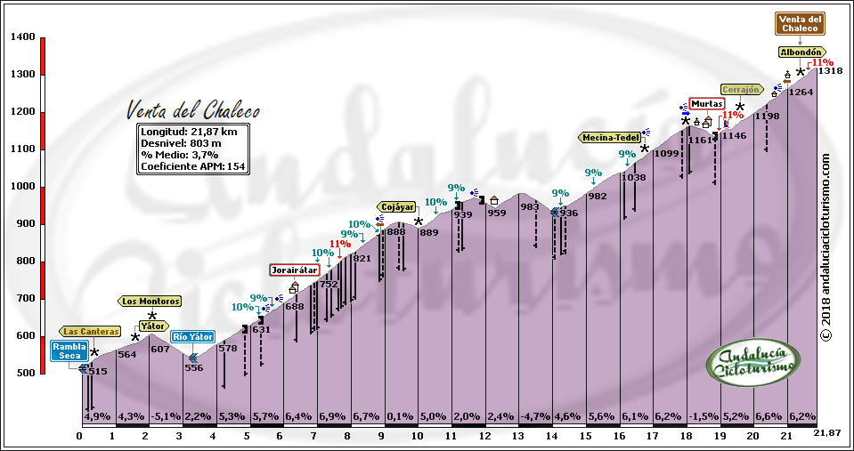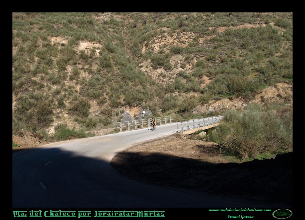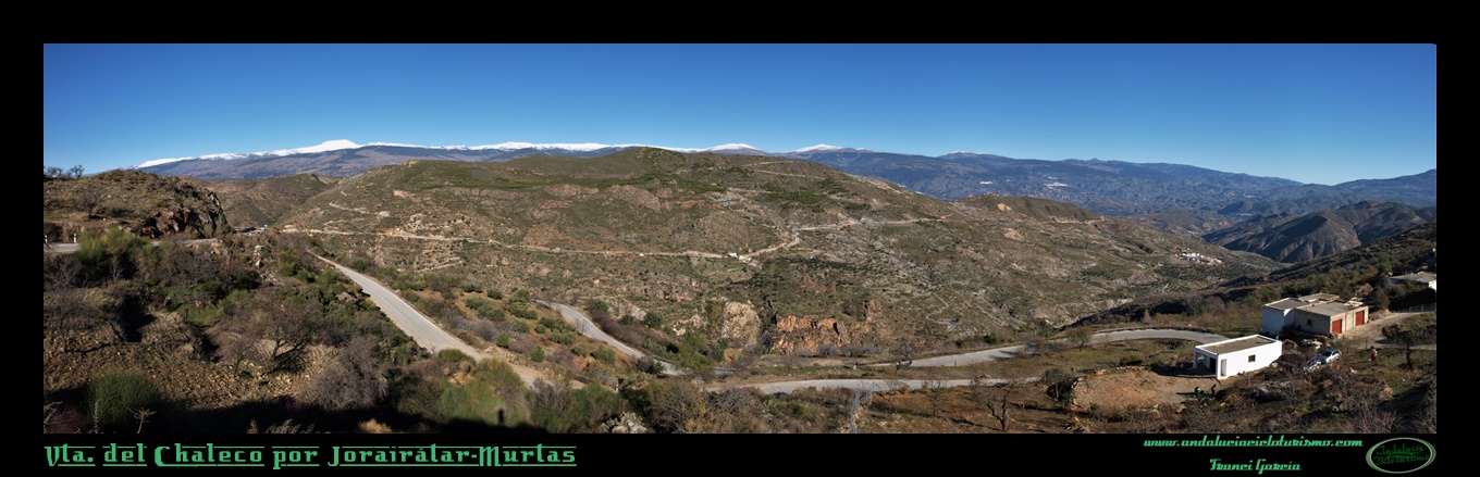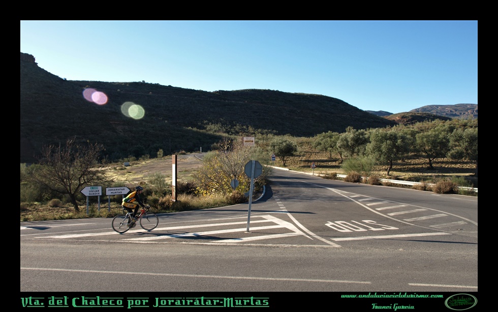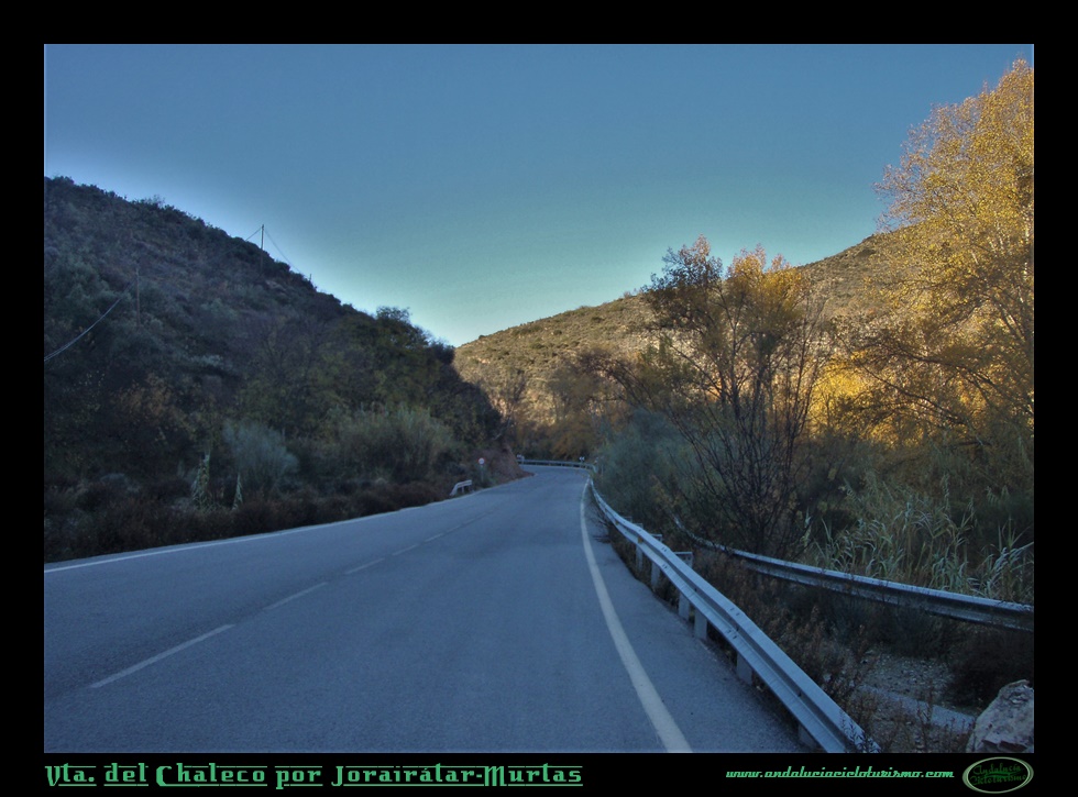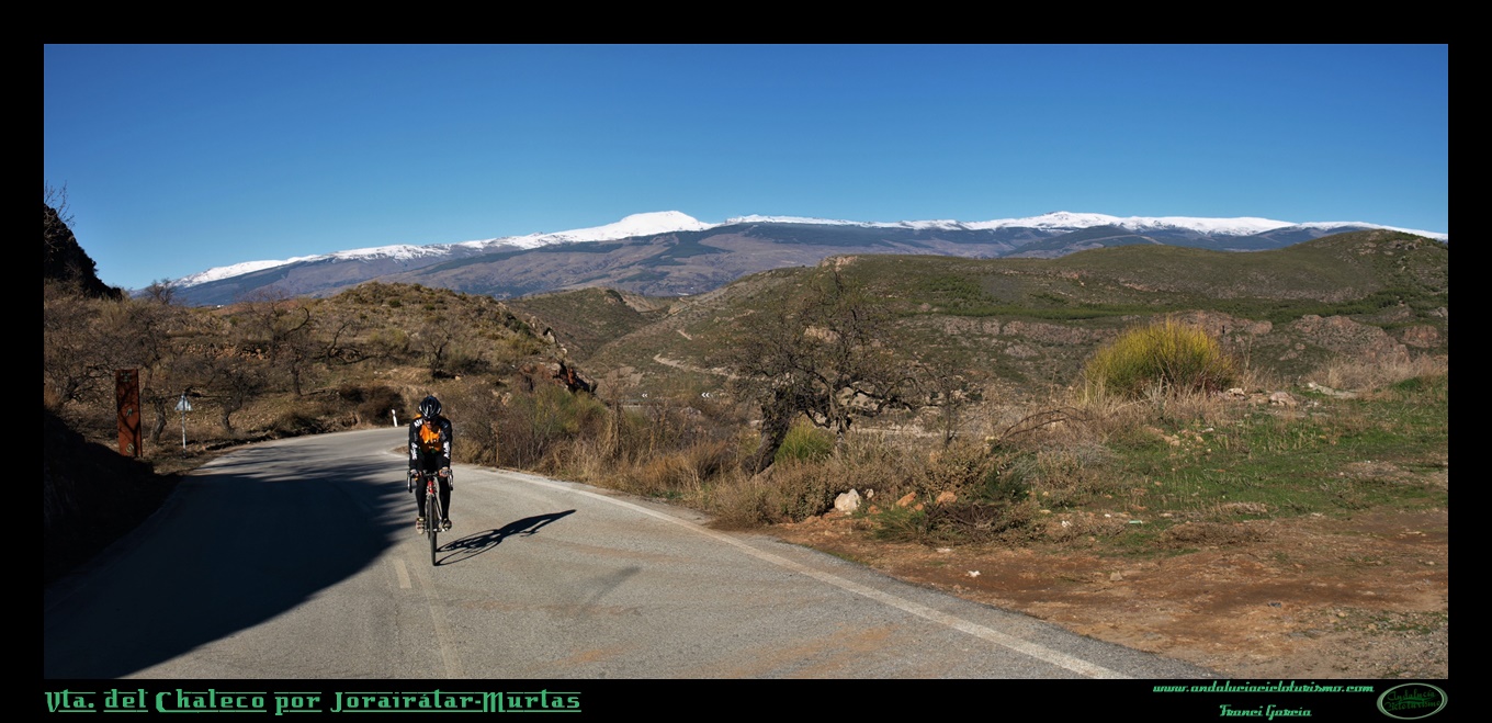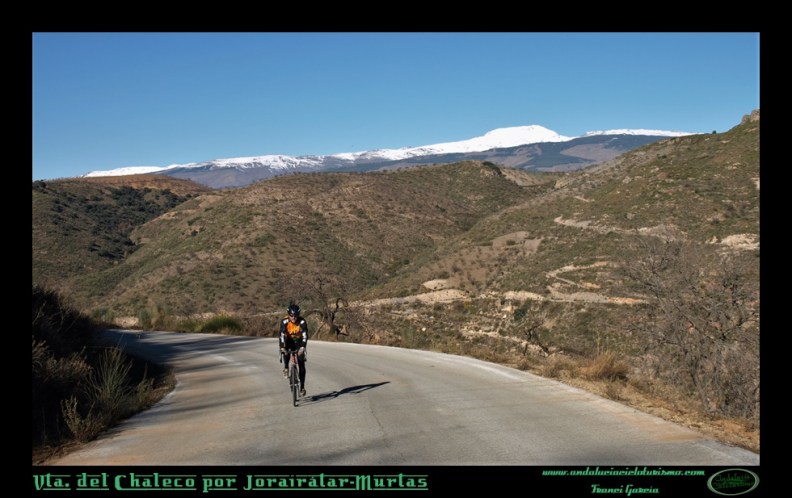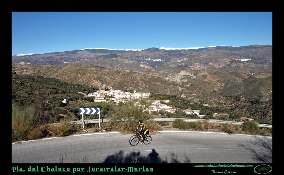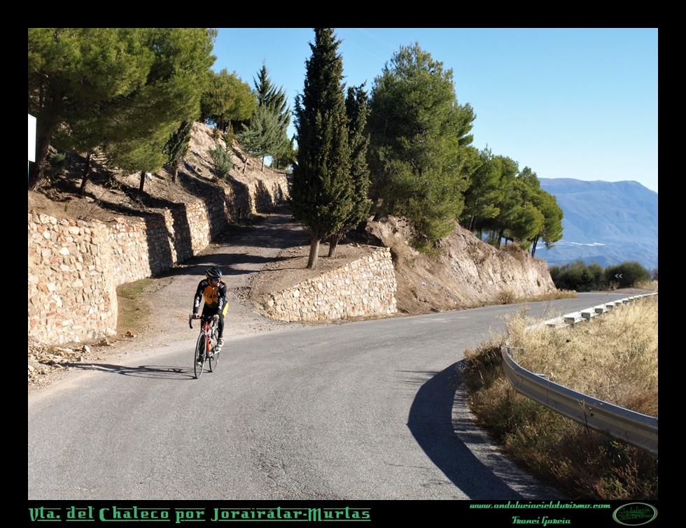 A continuación proponemos una de esas subidas irregulares, sin fuertes pendientes, pero de larga distancia, de las que merecen la primera categoría por el mero desgaste que supone su ascenso. Y eso que hemos de notar que esta vertiente de Jorairátar y Murtas que corona la Venta del Chaleco es la de menor dificultad de las tres existentes, siendo la sur la más exigente y, quizás, la del embalse de Benínar la más «cicloturista».