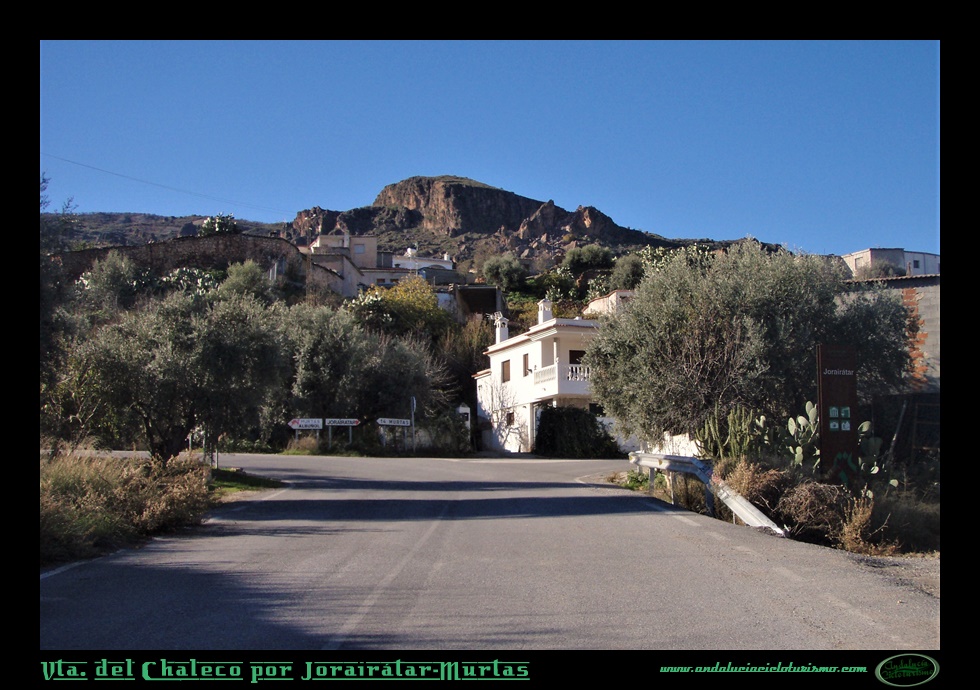 Giramos a la izquierda en dirección a Jorairátar y Murtas, obviando la carretera que continúa hacia Yátor y Cádiar. El firme mejora a partir de este punto.